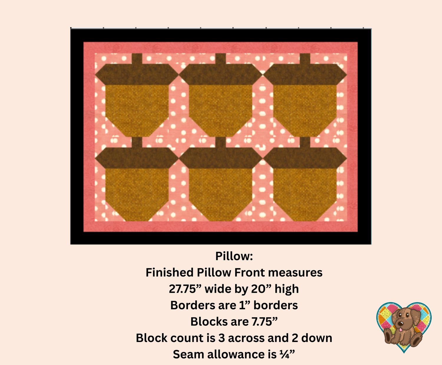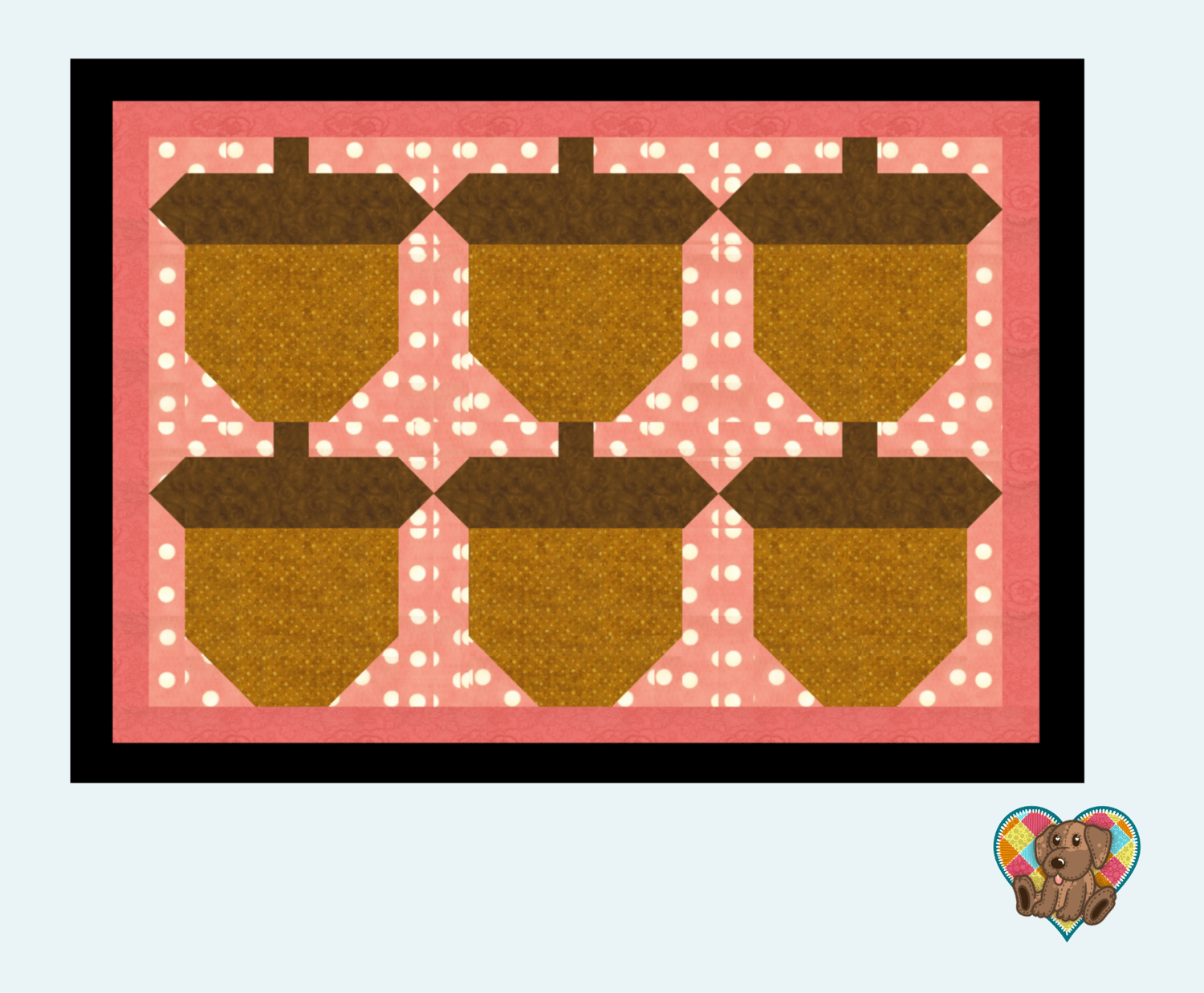 Pillow sham quilt front is 20" X 27.75" Blocks are traditional pieced blocks. This pattern includes bonus blocks to make an 8", 10", and 12" acorn block.