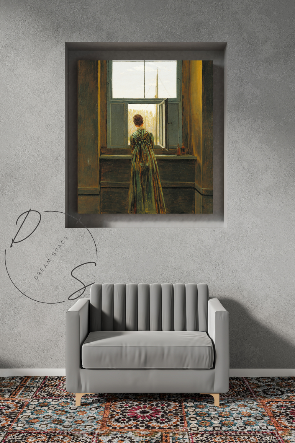 This is DIGITAL PRINTABLE PRODUCT | Instantly download and print this Woman at a Window Painting by Caspar David Friedrich. Original artwork 1822.