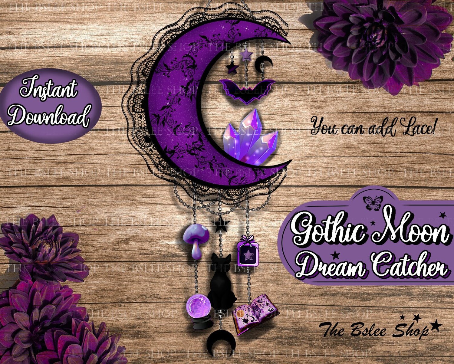 This is a gorgeous kit in purple tones for making your gothic witchy dream catcher! This kit is really easy to assemble, follow the instructions provided on the files. You will certainly have a joyful time making your own dream catcher! I recommend printing on cardstock( thick paper). Be a creative crafter and have fun! For customization you can add beautiful lace ribbons or other details( the chains and lace shown in the photos are not included in this kit). Save time by instantly downloading and printing the items, there is no shipping cost.