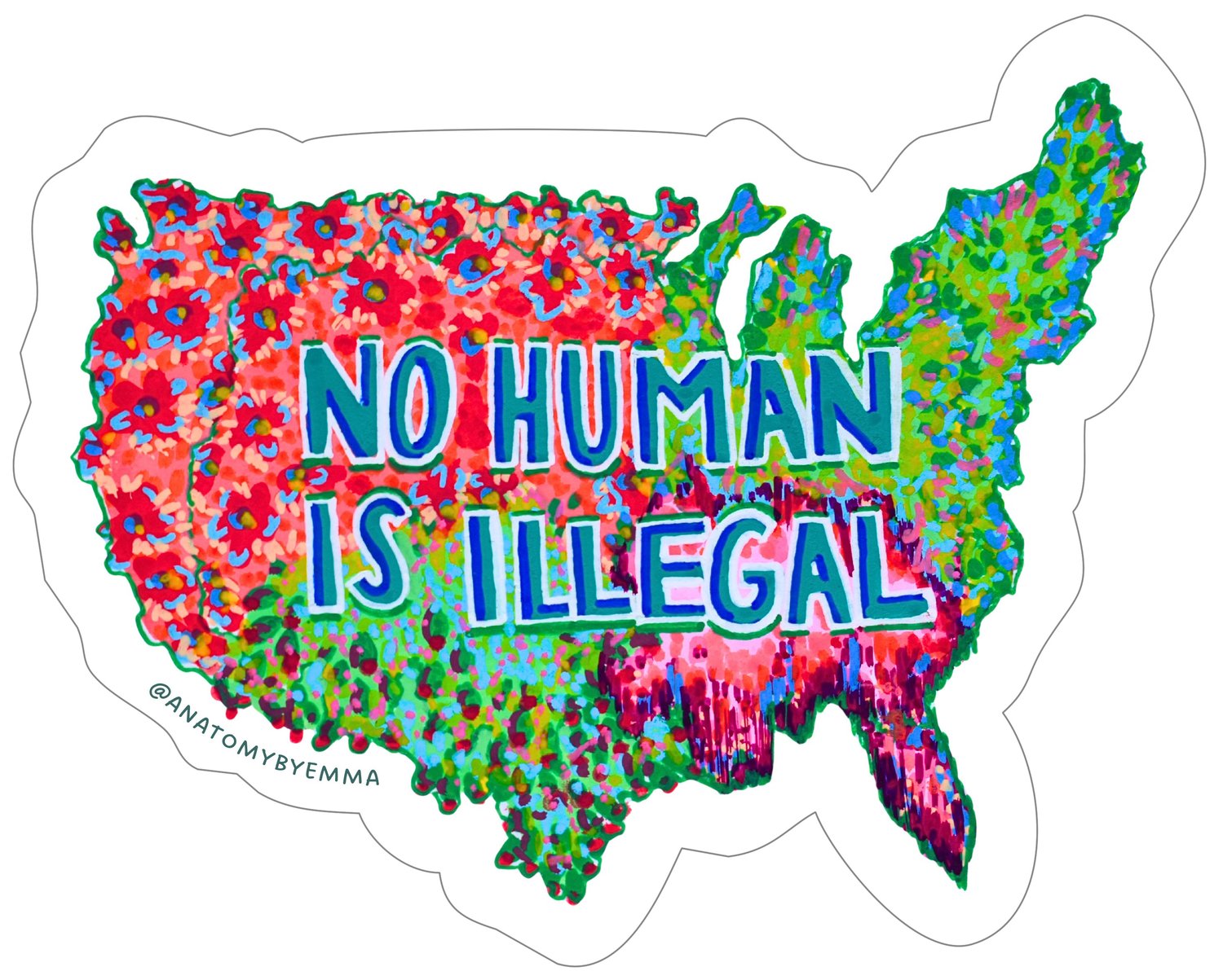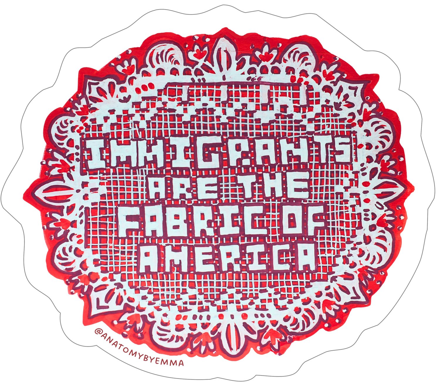 this sticker pack includes 3 regular sized waterproof vinyl stickers printed with my hand drawn artwork and covered with a clear matter laminate overlay for extra durability. this pack includes the fuck ice sticker (2.5 x 3in), the no human is illegal sticker (2.25 x 3in), and the immigrants are the fabric of america sticker (2.5 x 3in). save $2 when buying them together!