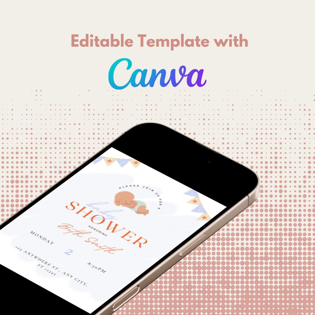 Cute Crayon Textured Elements Baby Shower Card Invitation Canva Template Design