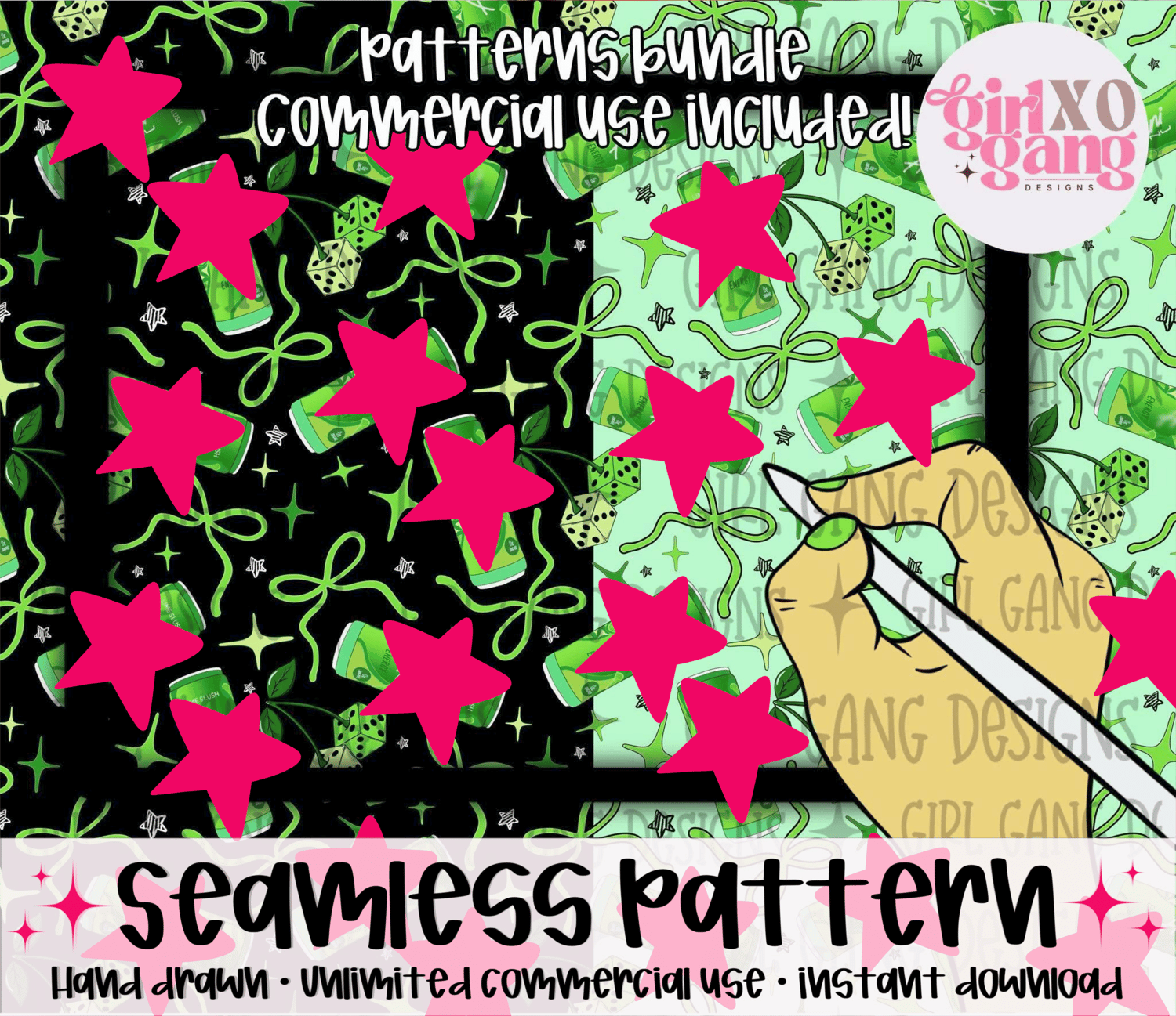Alan Lime energy drink seamless pattern png black and green backgrounds included
