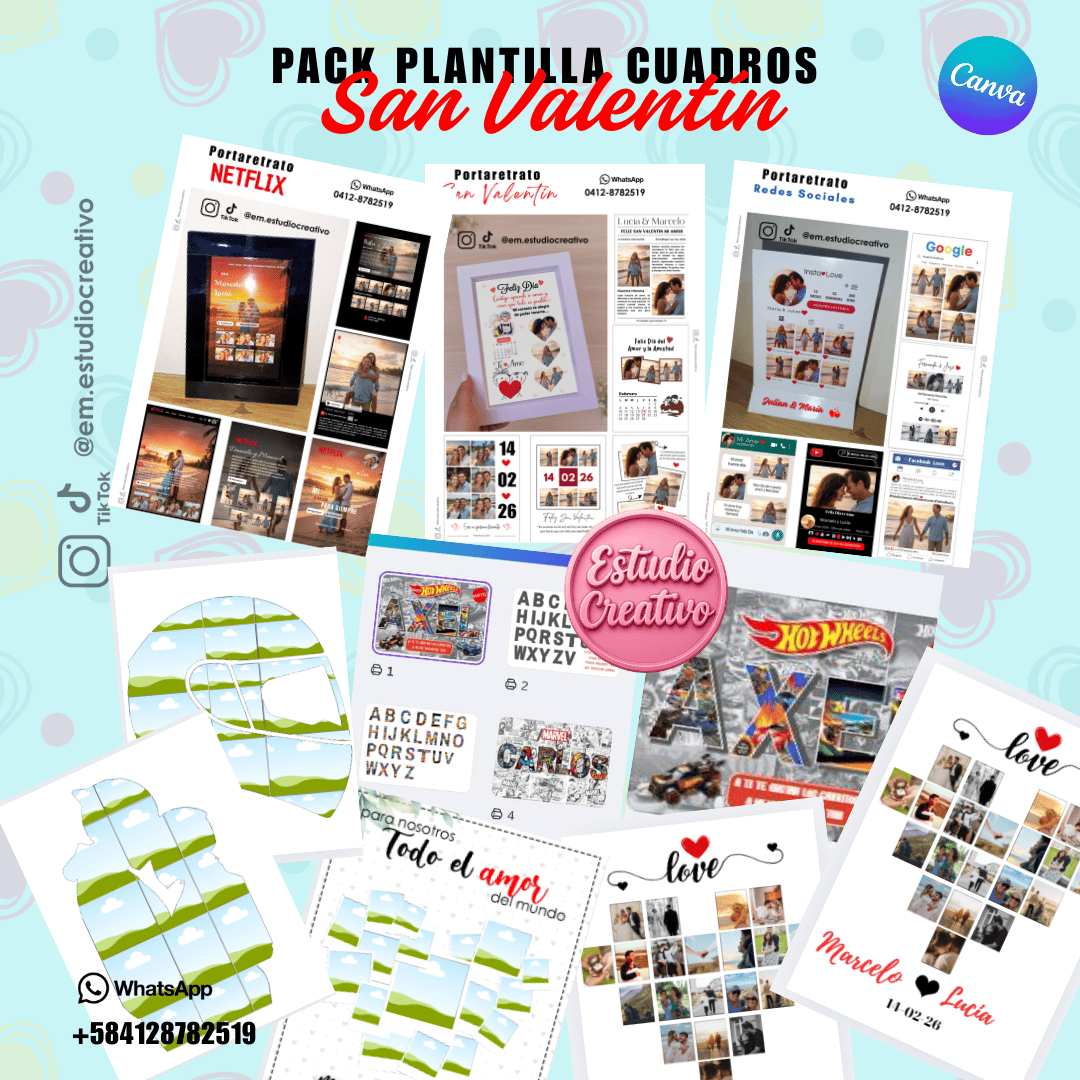 ¿Quieres emprender este 14 de febrero o hacer los mejores regalos? Te presento nuestro Pack de Plantillas en Canva con los diseños más virales y pedidos del momento. ¡Un solo pack, infinitas posibilidades!