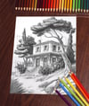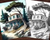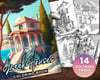14 Beautiful Greek Houses Coloring Book, Adults Instant Download -Grayscale Coloring Page - Printable PDF, Greek House, greece coloring,