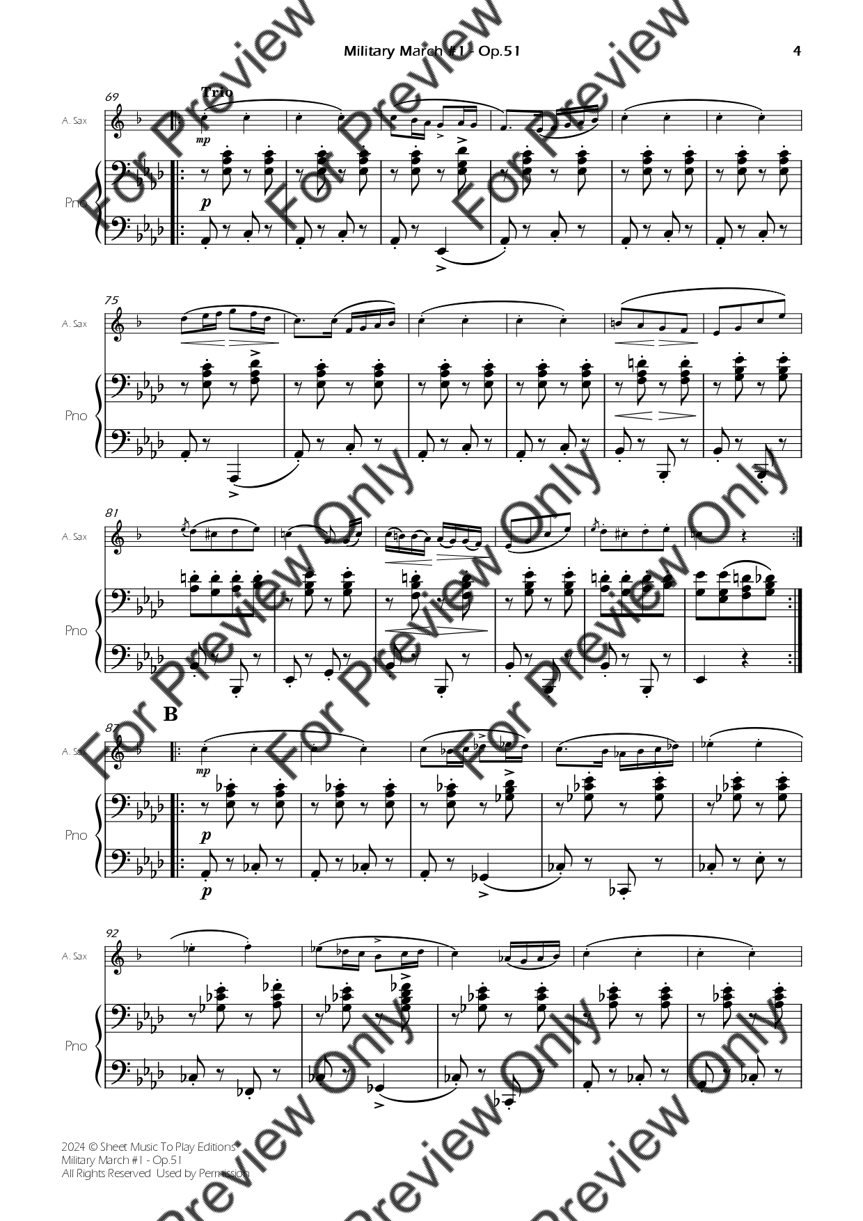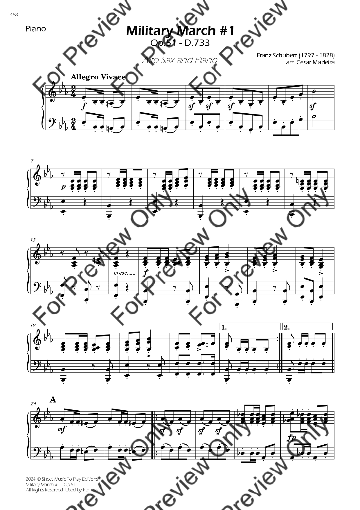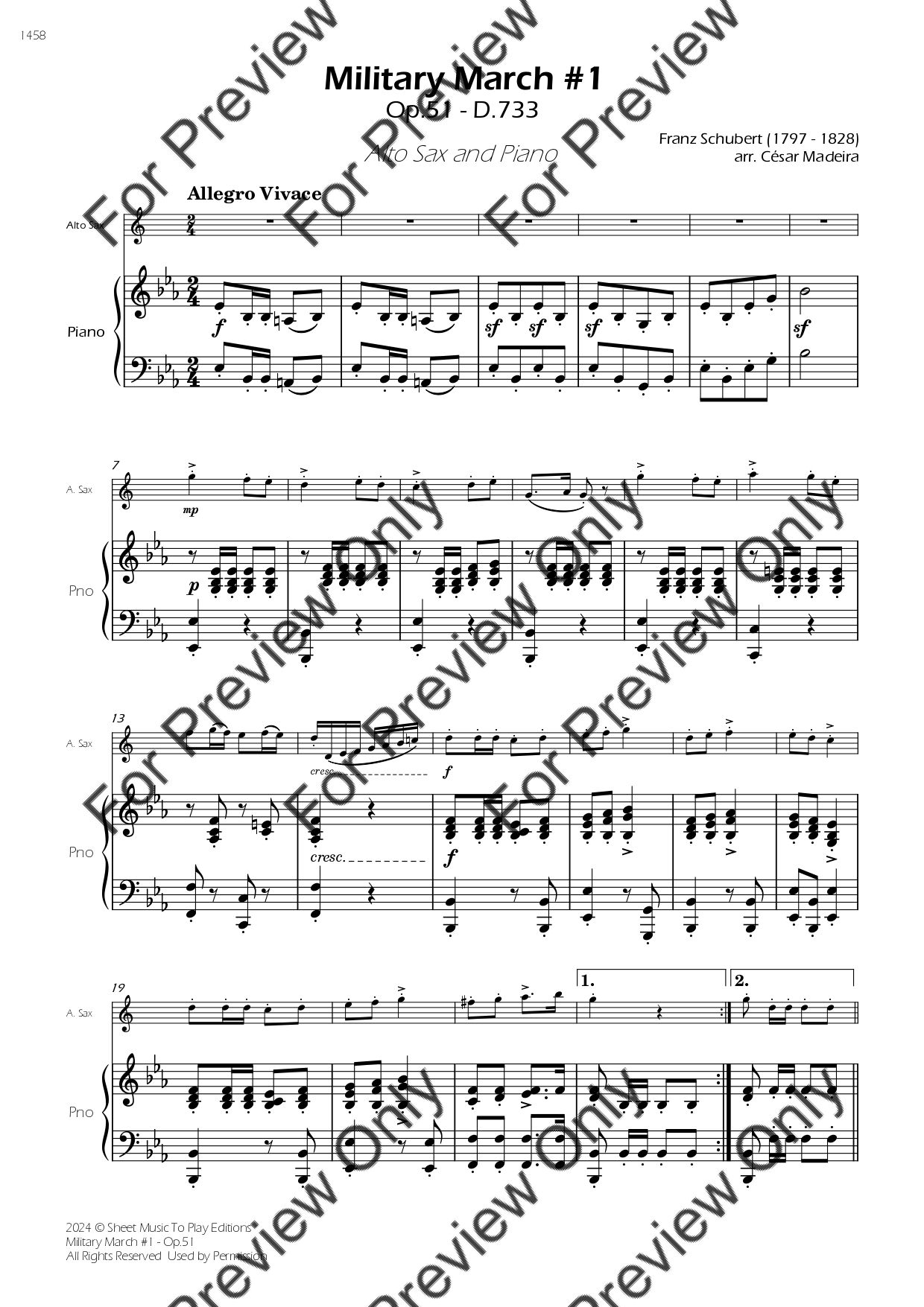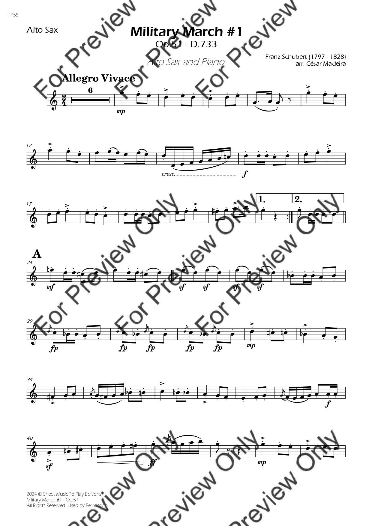 Military March No.1, Op.51 - D.733 by Franz Schubert. Arrangement for Alto Saxophone and Piano. With Full Score and Individual Parts. Have fun!