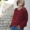 After the body is joined in the round and extra stitches are added to each underarm, it is then worked evenly in rounds to the bottom. The sleeves are then worked top down to the cuffs in a simple and smooth linen stitch pattern. The length of both the sleeves and body are easily adjustable.