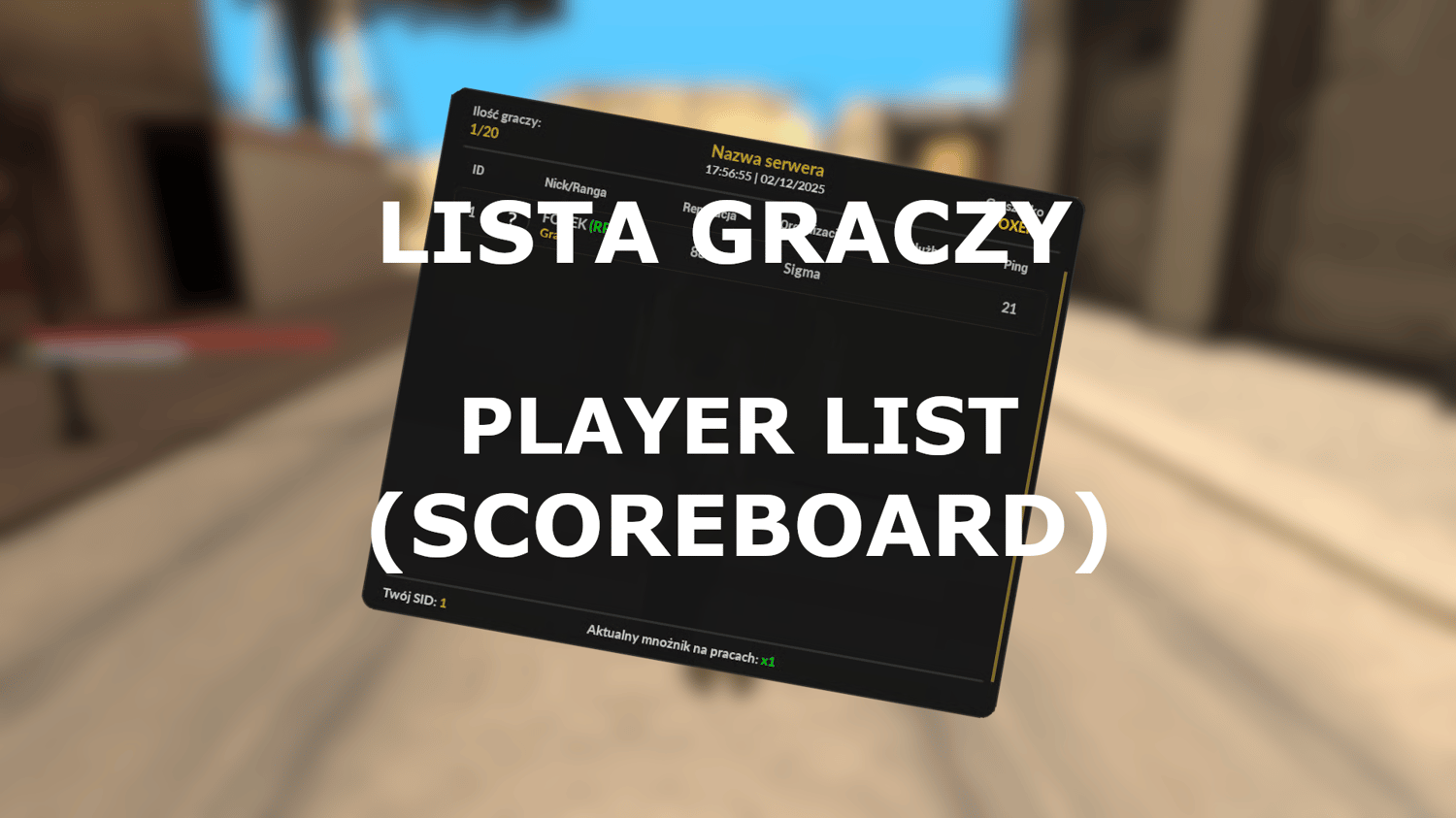 Lista graczy - inaczej scoreboard z serwera Project Phoenix, żeby skrypt działał trzeba mieć własny system pobierania rang administracyjnych/frakcyjnych oraz system avatarów - więc trzeba go dostosować do swojego serwera. Reszta działa poprawnie. Skrypt oddaje z tego powodu, że nie będzie on już używany.