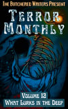Only 5% of the massive, mysterious ocean has been explored. Some of the sea creatures we know about are terrifying, but what else dwells in the dark depths? Volume 12 of Terror monthly brings tales of ocean horror in: What Lurks In The Deep