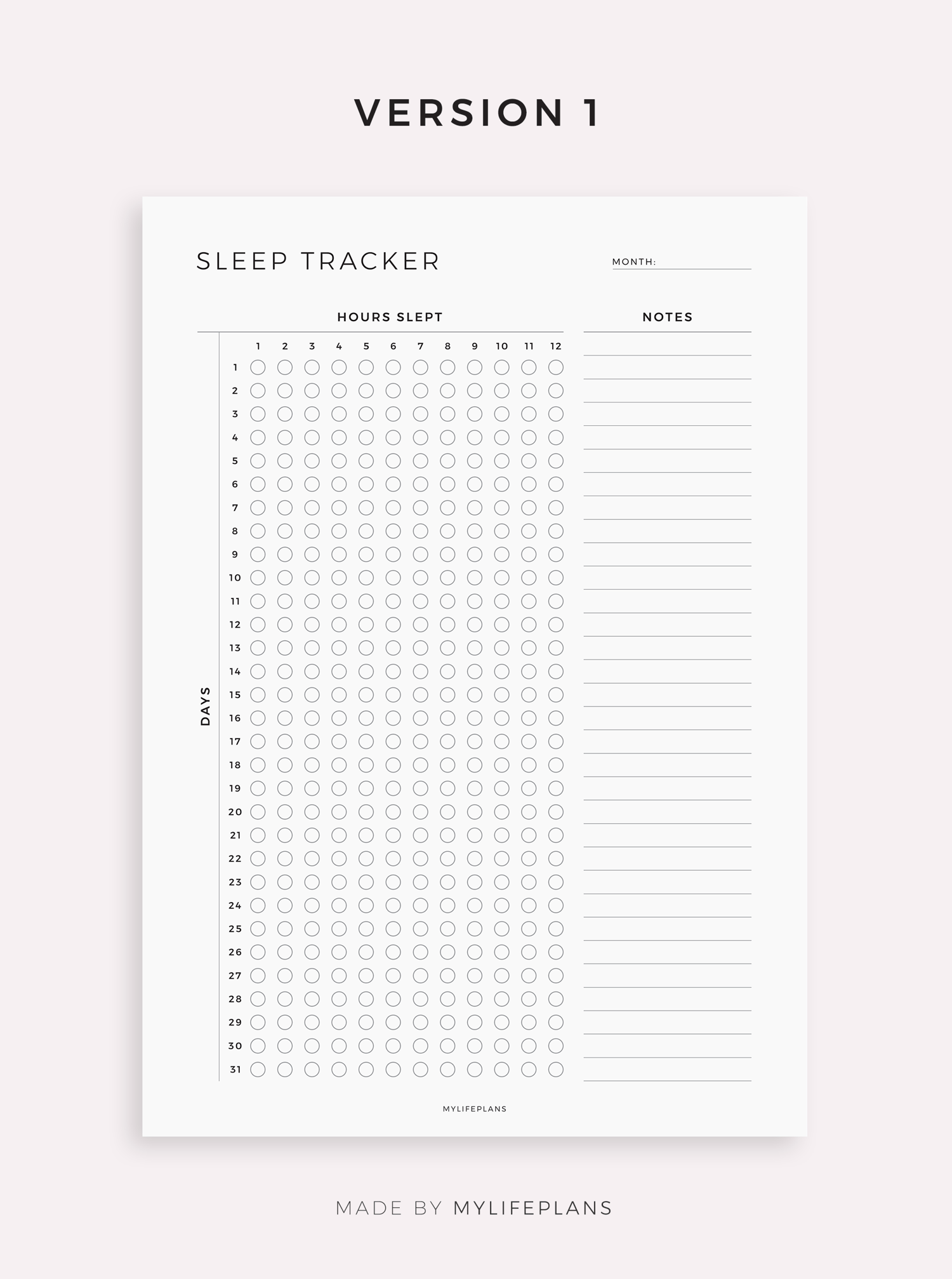 Sleep Tracker Template for Remarkable, Supernote, Kindle Scribe, Boox, Kobo