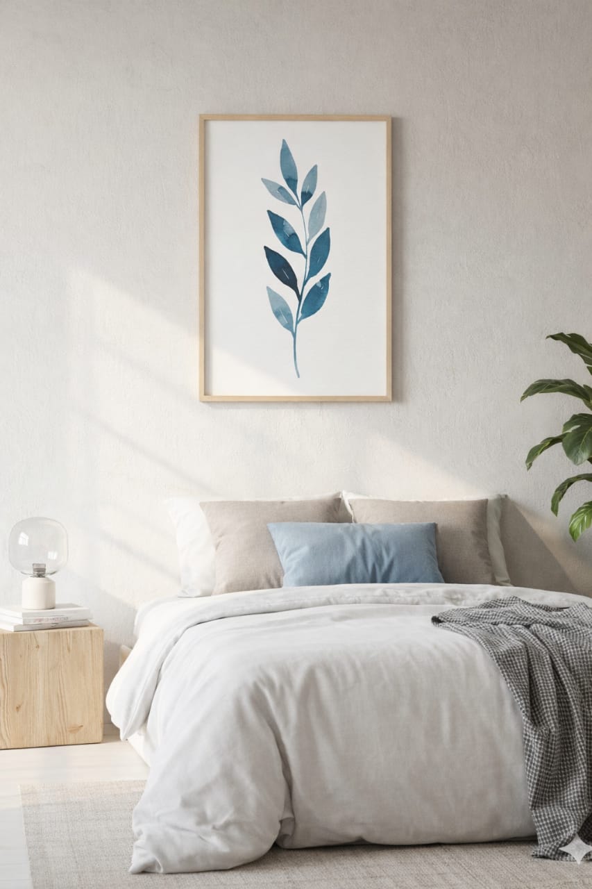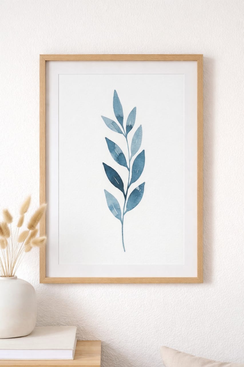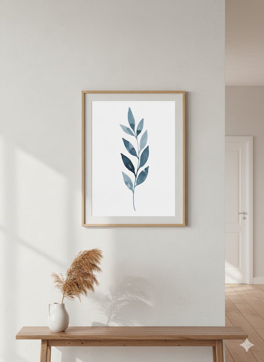 Bring calm and elegance into your space with this minimalist blue botanical wall art.