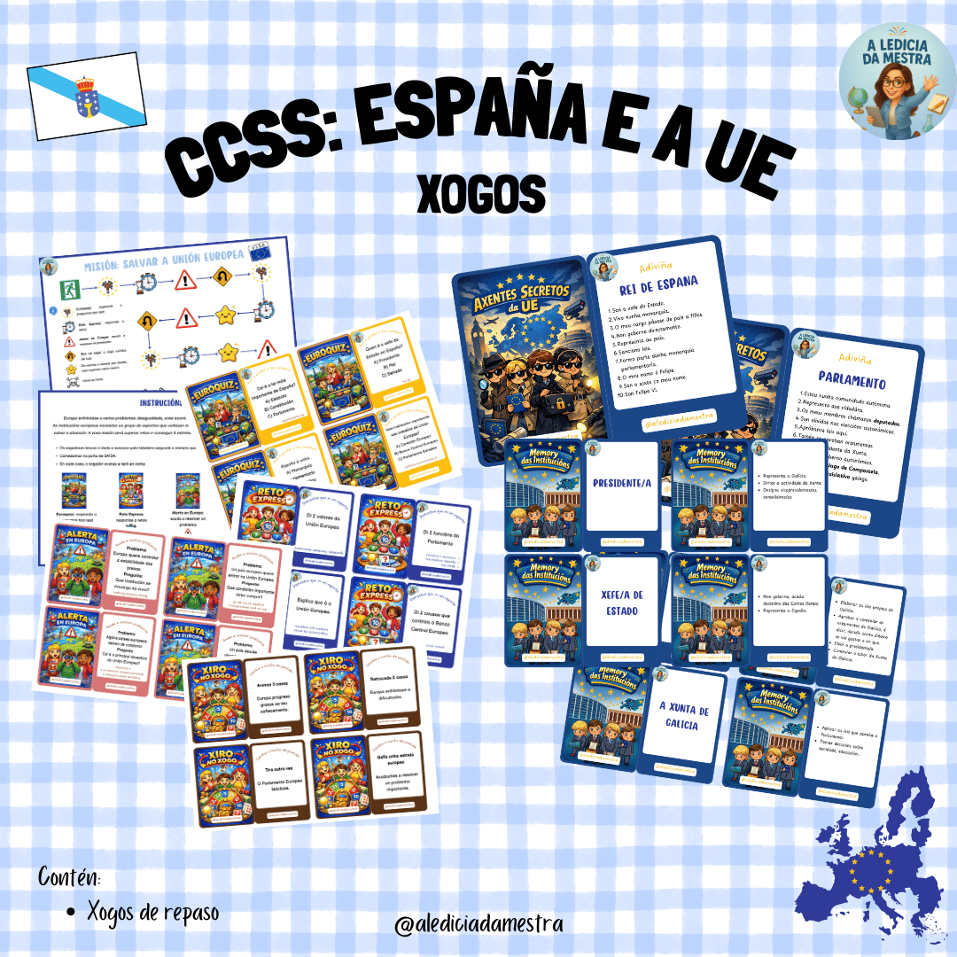 Seguindo a teoría deste material: https://payhip.com/b/DUo4Y sobre España e a Unión Europea, che comparto uns xogos de mesa para repasar os contidos: