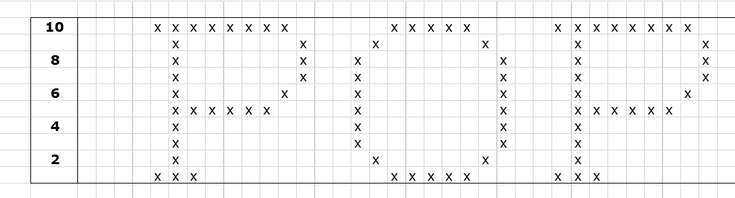 LOVES ME = 59 squares wide and 10 squares high.