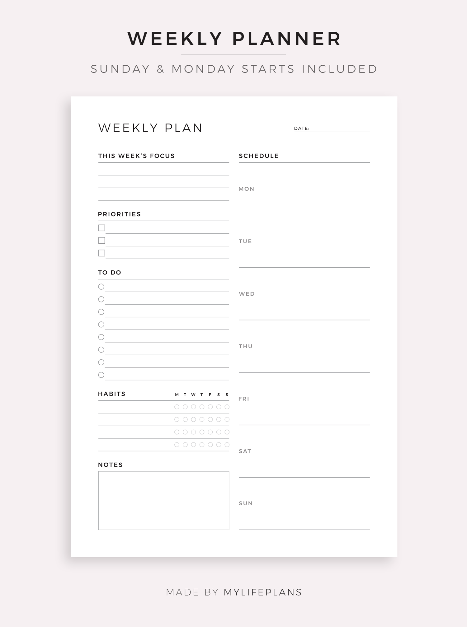 • Includes A4, Letter, and Fillable(A4) planners
