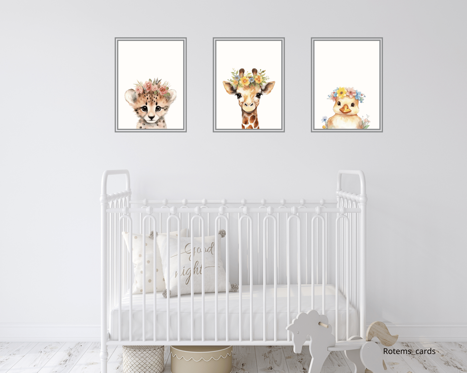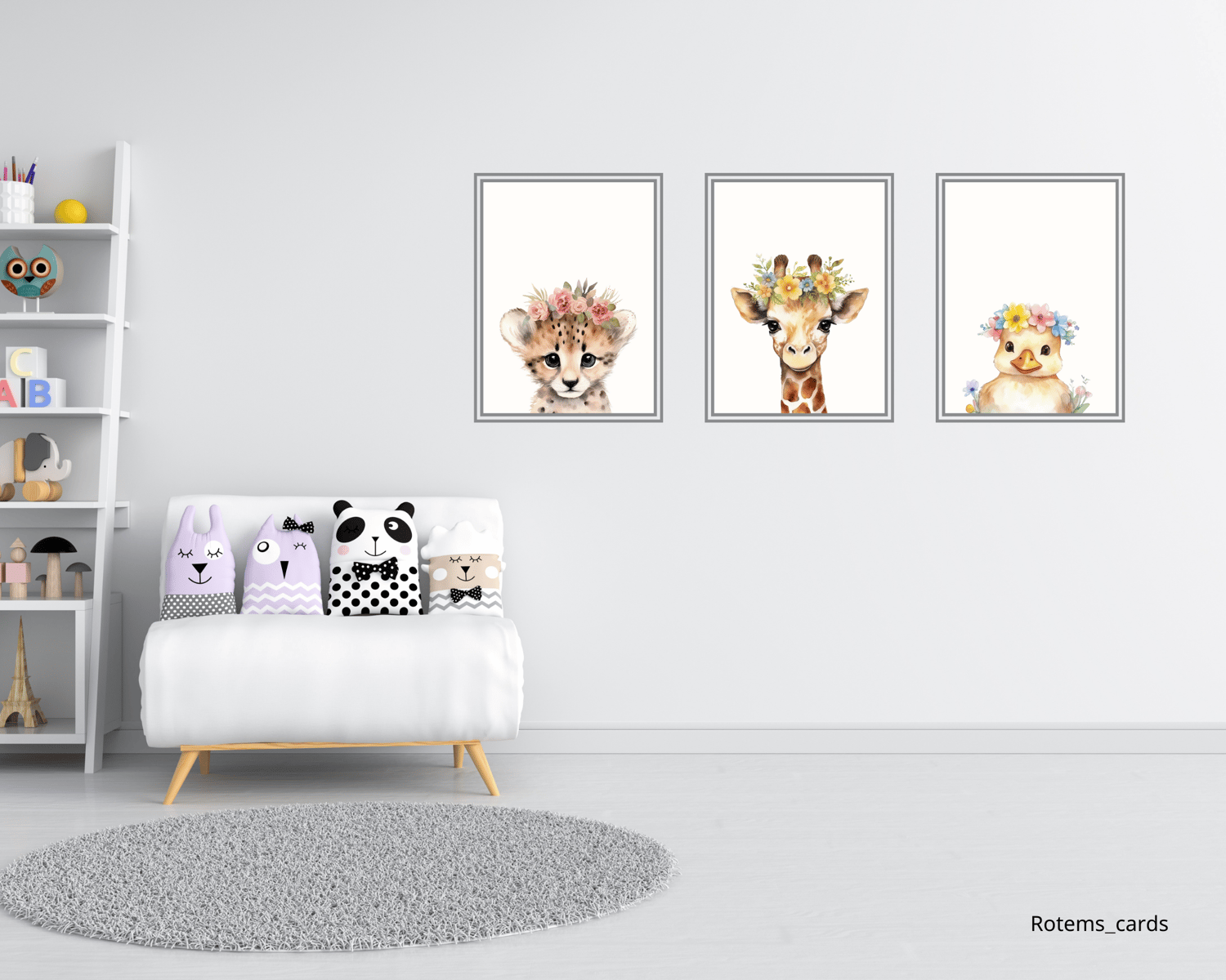 Set of 3 cute baby animals to decorate your nursery or kids rooms