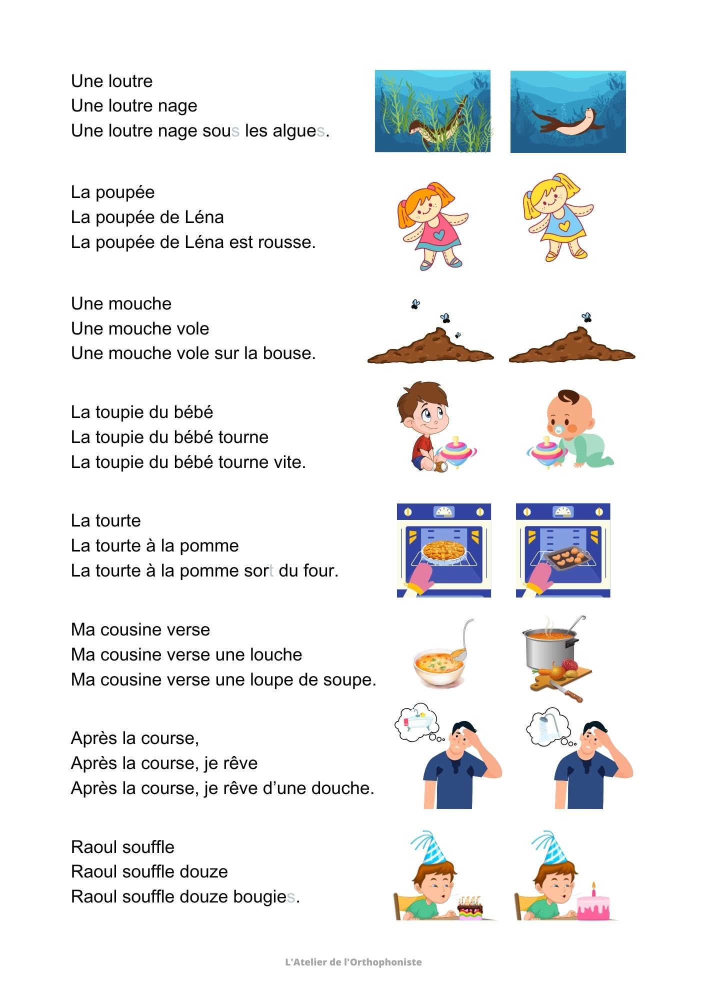 - des mots comportant les digraphes du français : ou, on, oi, an, en, ei, ai, au, eu, in