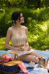 A little lace tank for all your sweet, idyllic summer time activities. Knit from the bottom-up with a simple 7-stitch lace motif, this camisole works up incredibly quickly, uses very little yarn and is perfect for your afternoon crumpets and tea! Coquette summer, anyone?! For a darling matching set moment, consider also knitting my Crumpet Cardigan!
