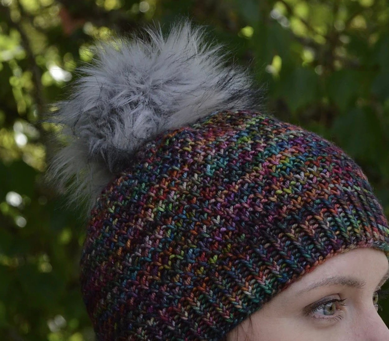 We are drawn to the beauty of indie yarn with admiration and inspired to create. The intricate stitch details of this hat highlight the shifting of colors. Just like that of a Kaleidoscope bringing life and beauty to yarn that is a piece of art in itself.