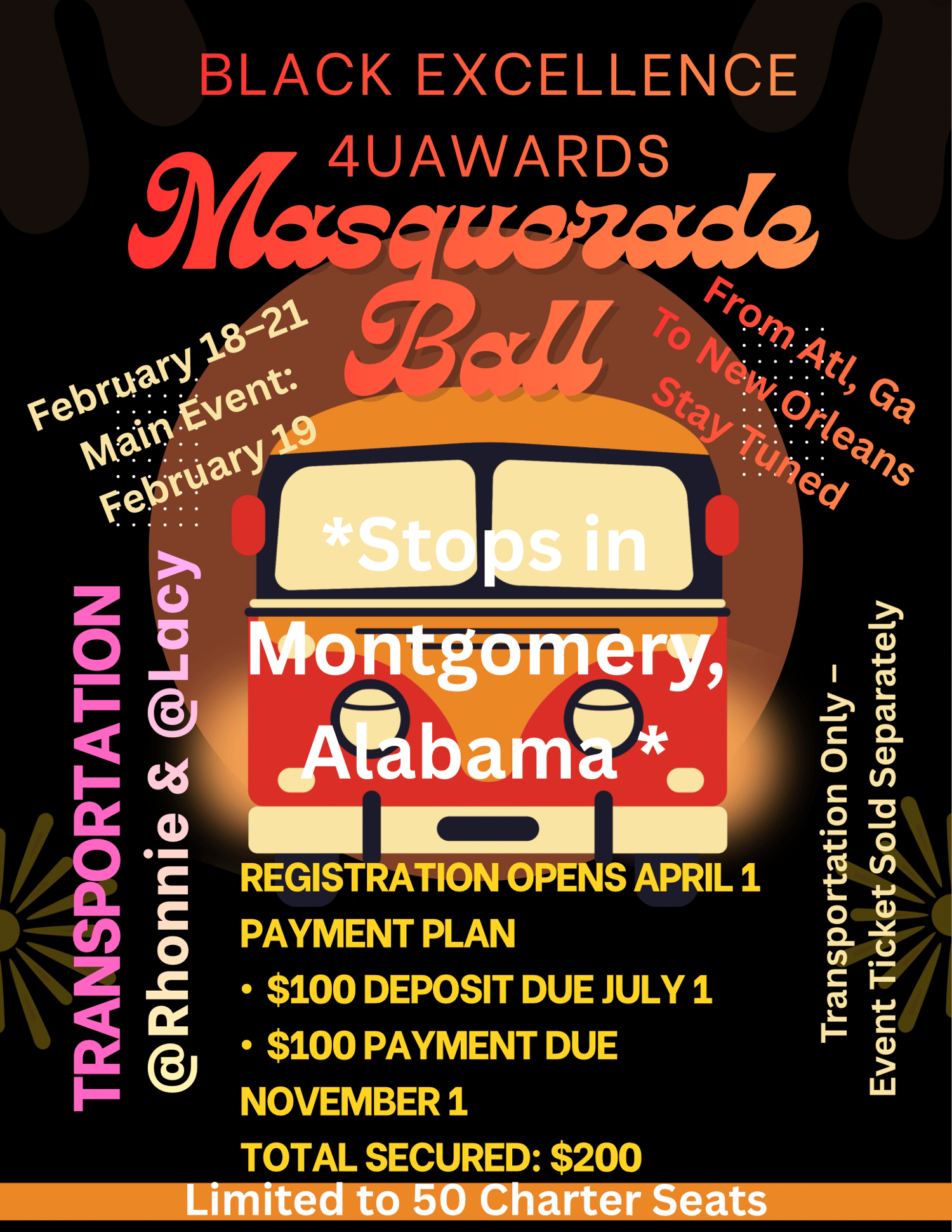 Secure your seat on the Official Black Excellence 4U Awards Charter to New Orleans for the 2027 Masquerade Ball Weekend.