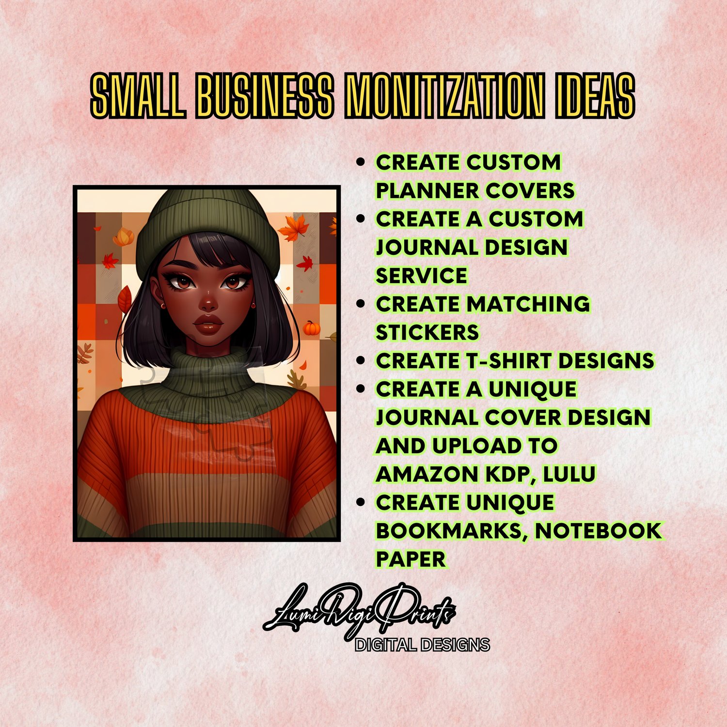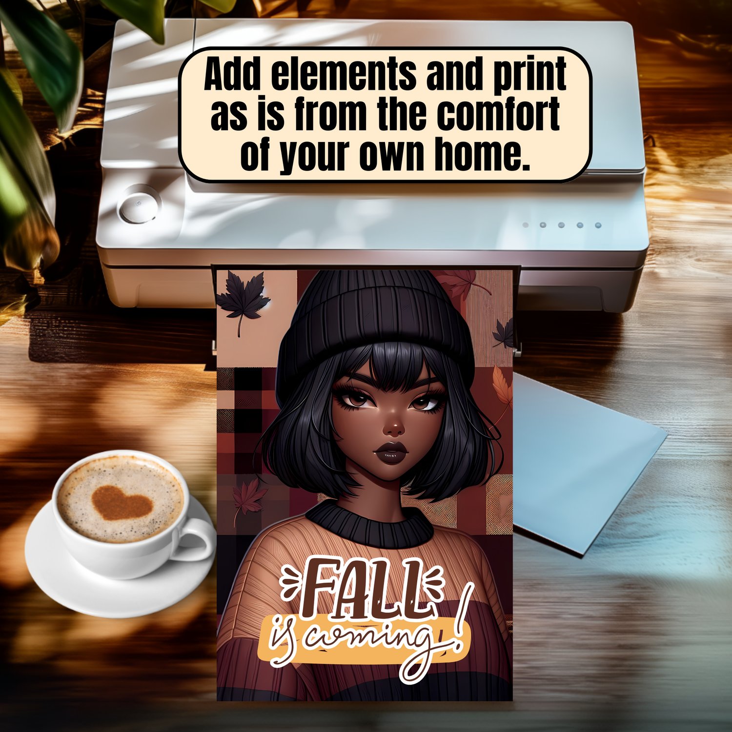 This printable journal cover set is ideal for small businesses, teachers, students, and DIYers who want to bring cozy fall energy and bold representation into their creative workflow. With vibrant fall colors, plaid patterns, and confident character art, your digital or printed notebooks will never look basic again.