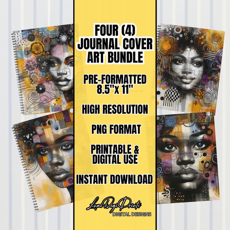 Add a warm and stylish touch to your notebooks, digital planners, and journals with this fall-inspired printable cover art set. Featuring four unique designs of fashionable African American girls in cozy sweaters and beanies, this high-resolution bundle is perfect for seasonal DIY projects, digital planning, or printable stationery.