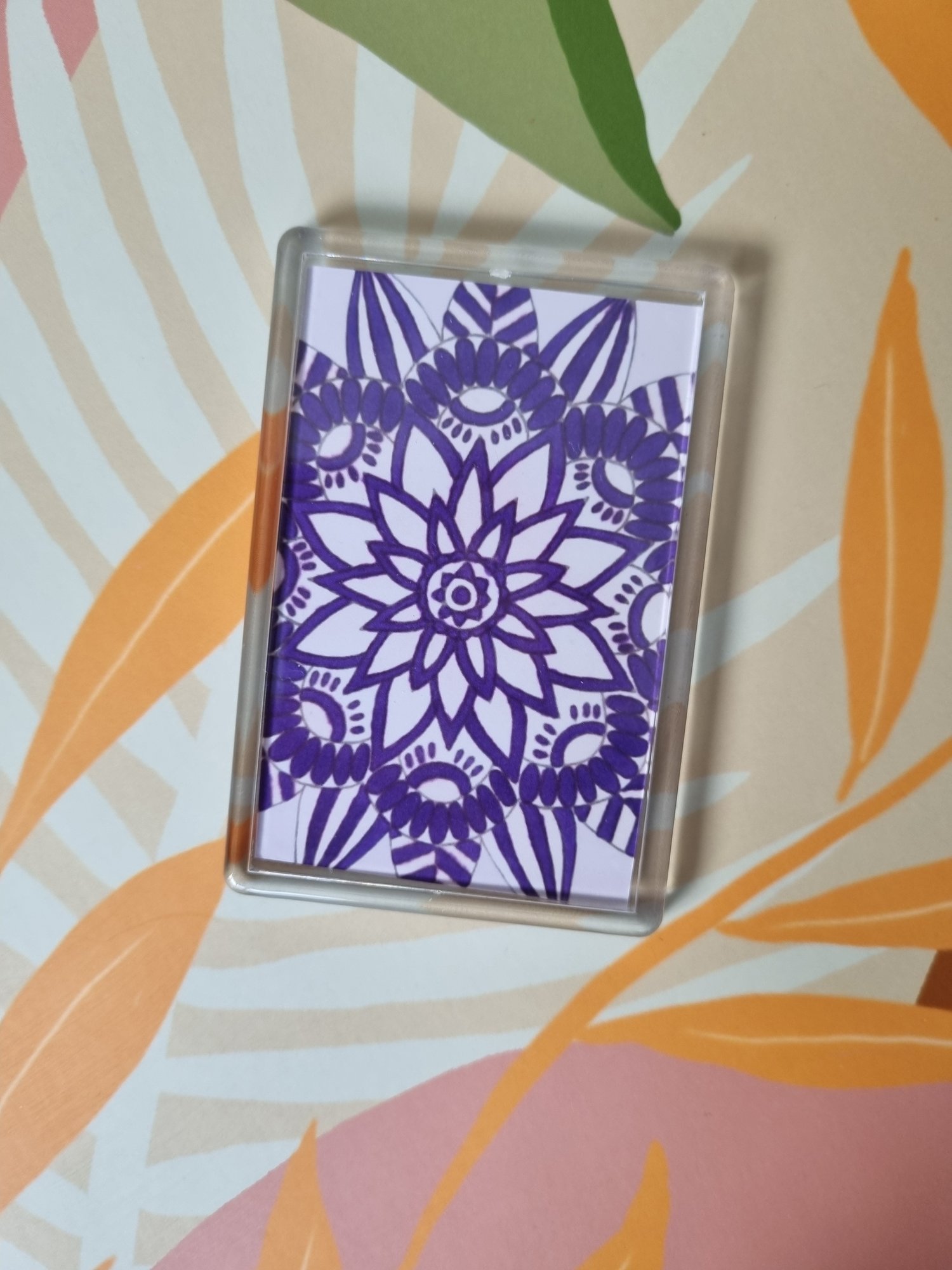 Funky 'Mandala - Style Close Up ' Fridge Magnet in a purple & lilac design (5cm - 7.5cm)