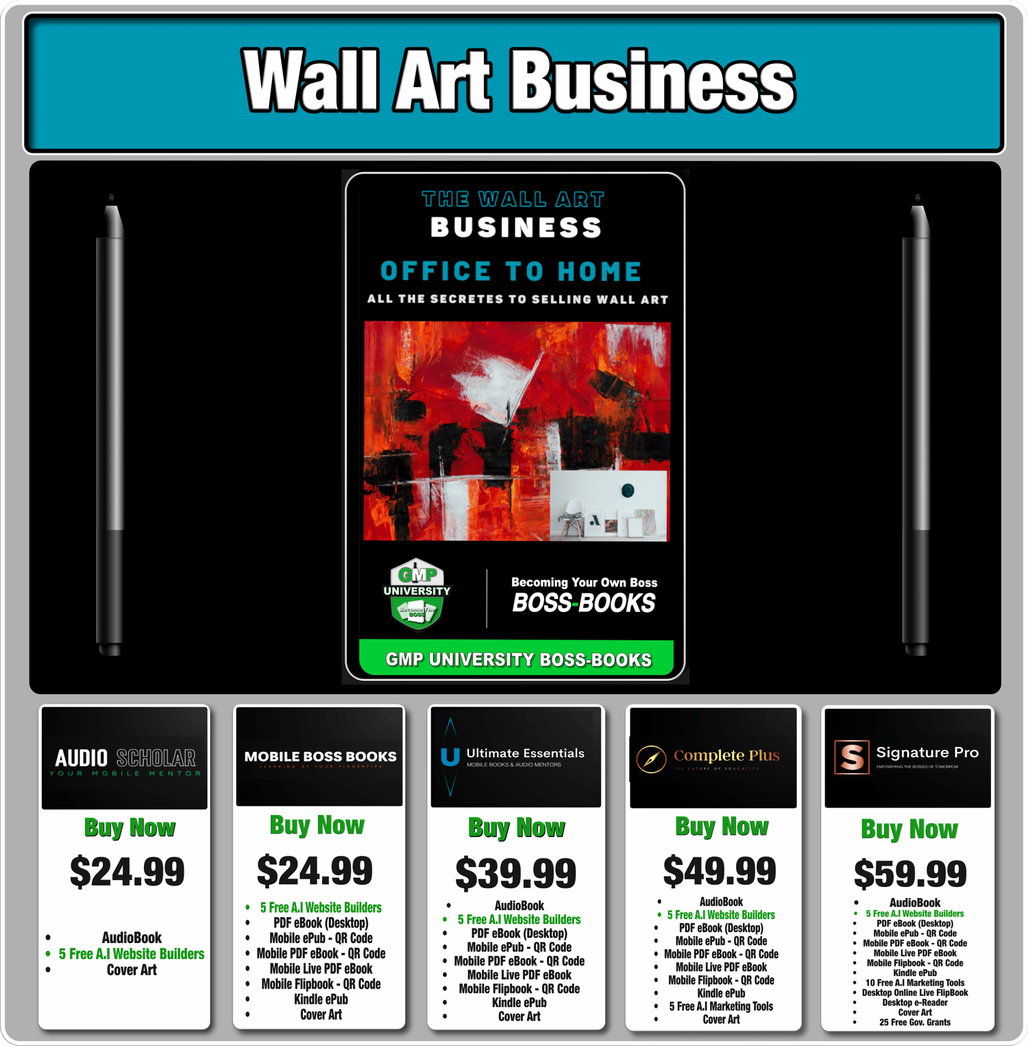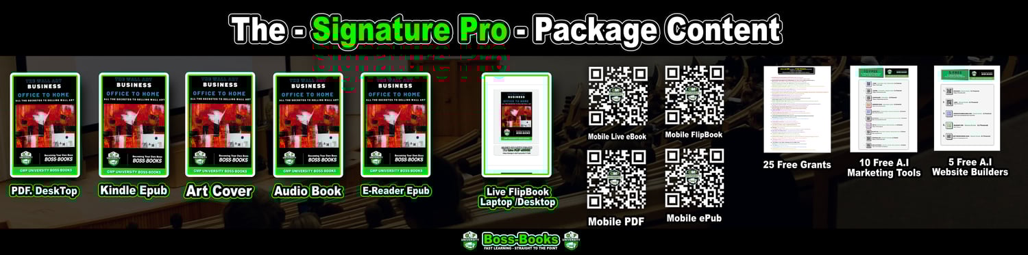 Wall Art Business - Signature Pro - With Audiobook / Mobile QR Codes / 10 Free A.I Tools / 25 Grant List / 5 Free A.I Website Builders & More