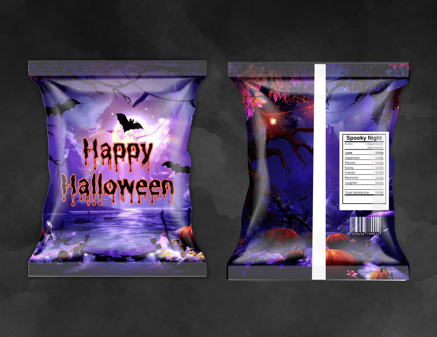 Add a hauntingly beautiful touch to your Halloween party favors with this Purple “Spooky Night” chip bag template! Featuring a glowing purple moonlit lake, eerie bats, pumpkins, and a mystical haunted vibe, this printable treat wrapper is perfect for trick-or-treat handouts, spooky-themed parties, school celebrations, and boo baskets.