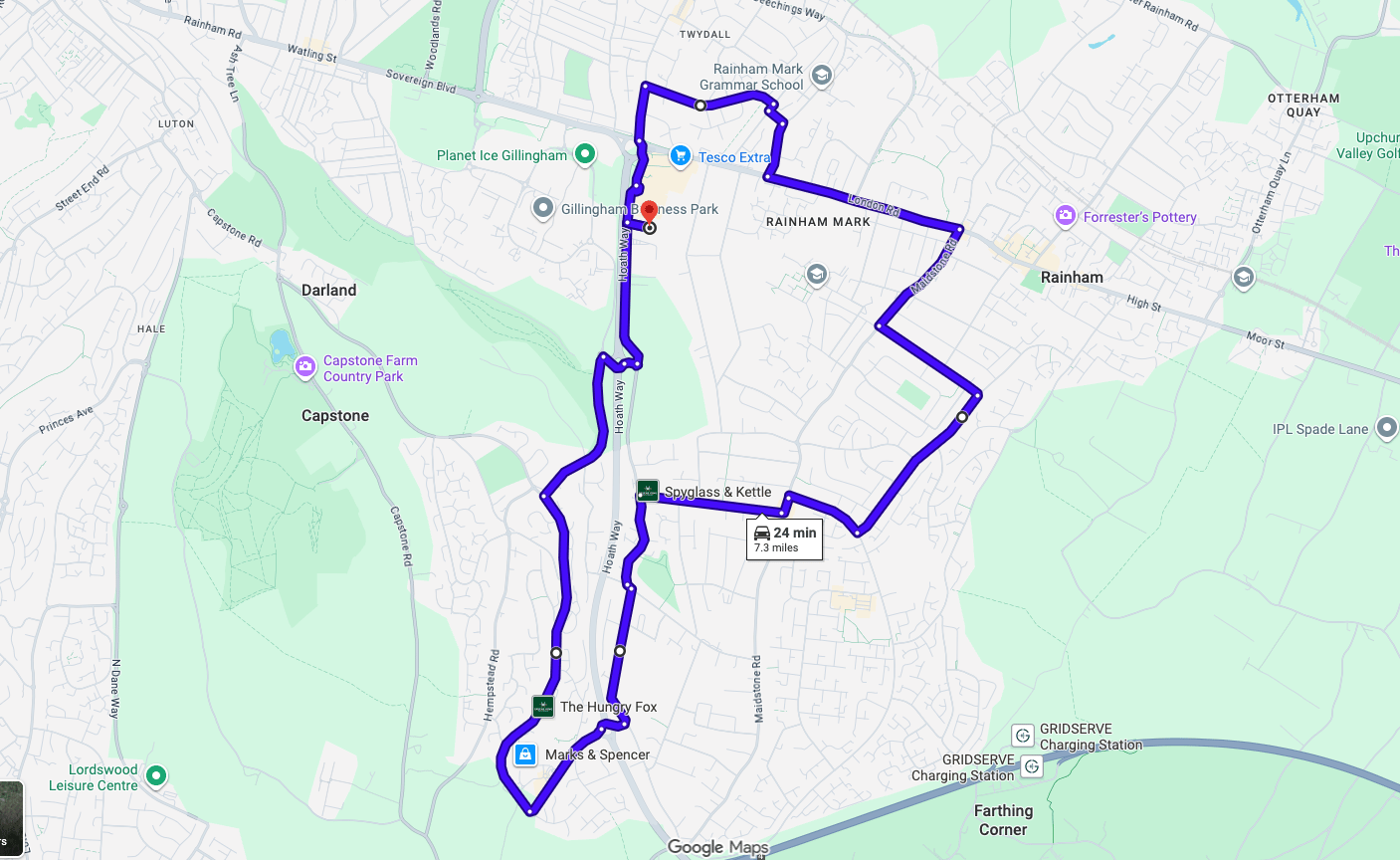 Practise real driving test routes in Gillingham before your exam – open directly in Google Maps