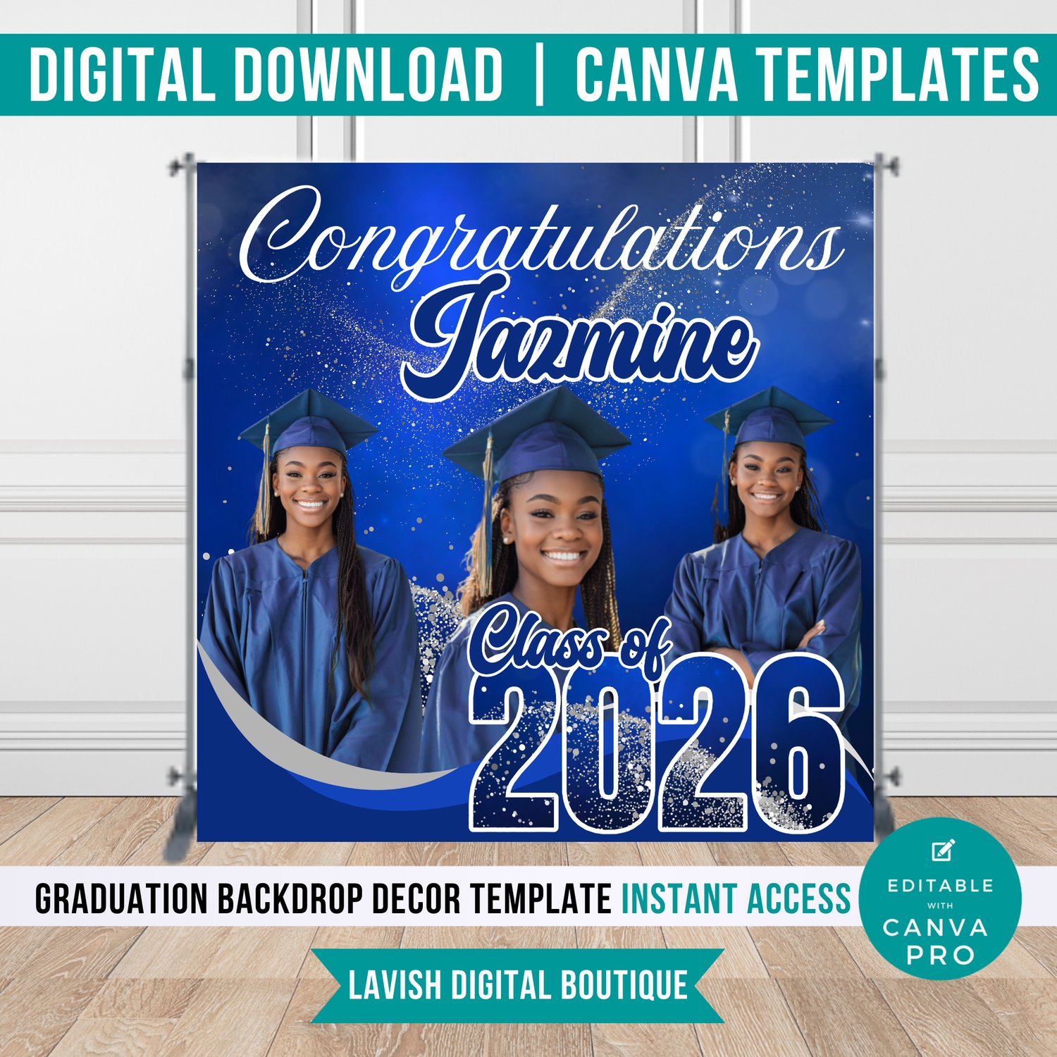 Blue Editable Graduation Backdrop Canva Template | Grad Party Arch Panels | Printable Graduation Decor | Instant Download