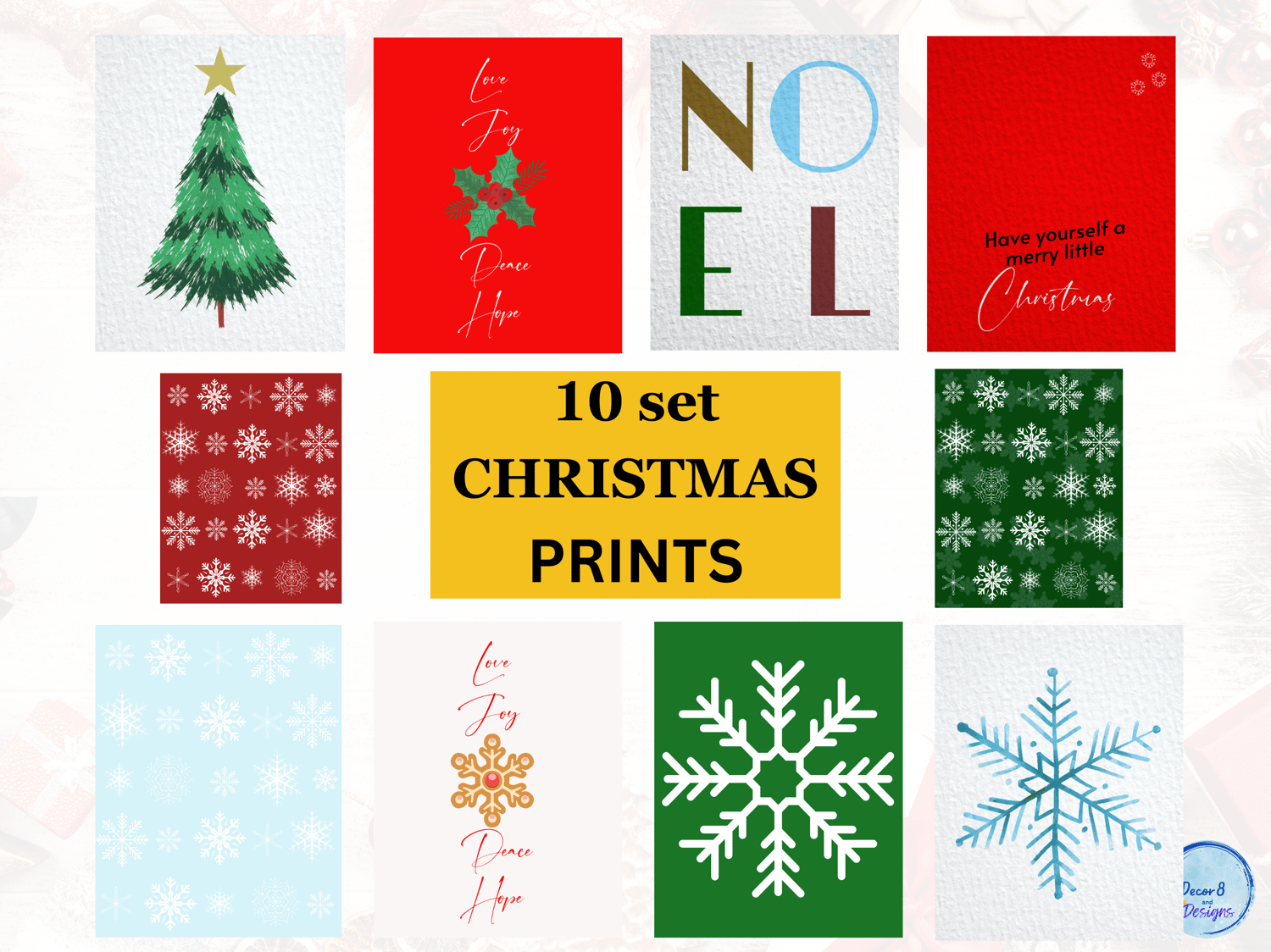 Christmas Print Bundle Set of 10 Printable Wall Art