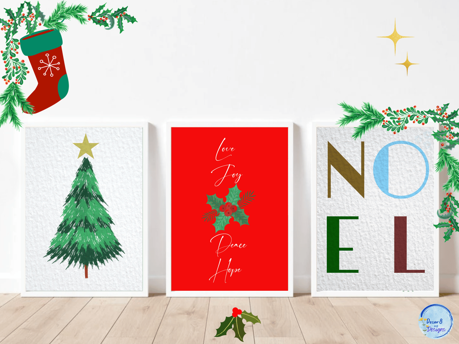 A trendy colorful and festive mood set of 10 Christmas eye-catching gallery prints for the big day. Wow your guests and family, set the mood and tone in your best room or give them as a trendy gift, or simply reuse them to make that festive mood every year when the decorations come out. Get these ahead for this Christmas.