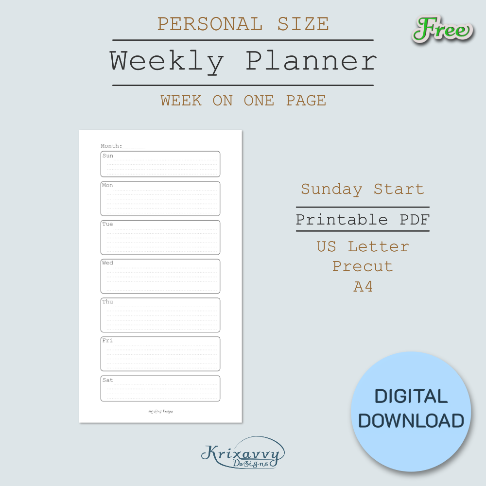 FREE | Undated Personal Size Planner | Free Weekly Personal Size Planner Insert | Weekly Planner | Week on One Page| Planner Insert | Personal Size | Printable PDF | WO1P | Sunday Start