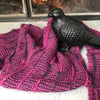 This sample (knitted in worsted weight yarn) is quite long (7 ft 5 in/ 2.25m) and uses 300 yd/ 275m of each colour. Using two 200 yard/ 183 meter skeins of worsted weight yarn will make a 5 foot/ 1.50 m scarf -- perfect tucked into a coat. This design also works well in DK weight yarn.