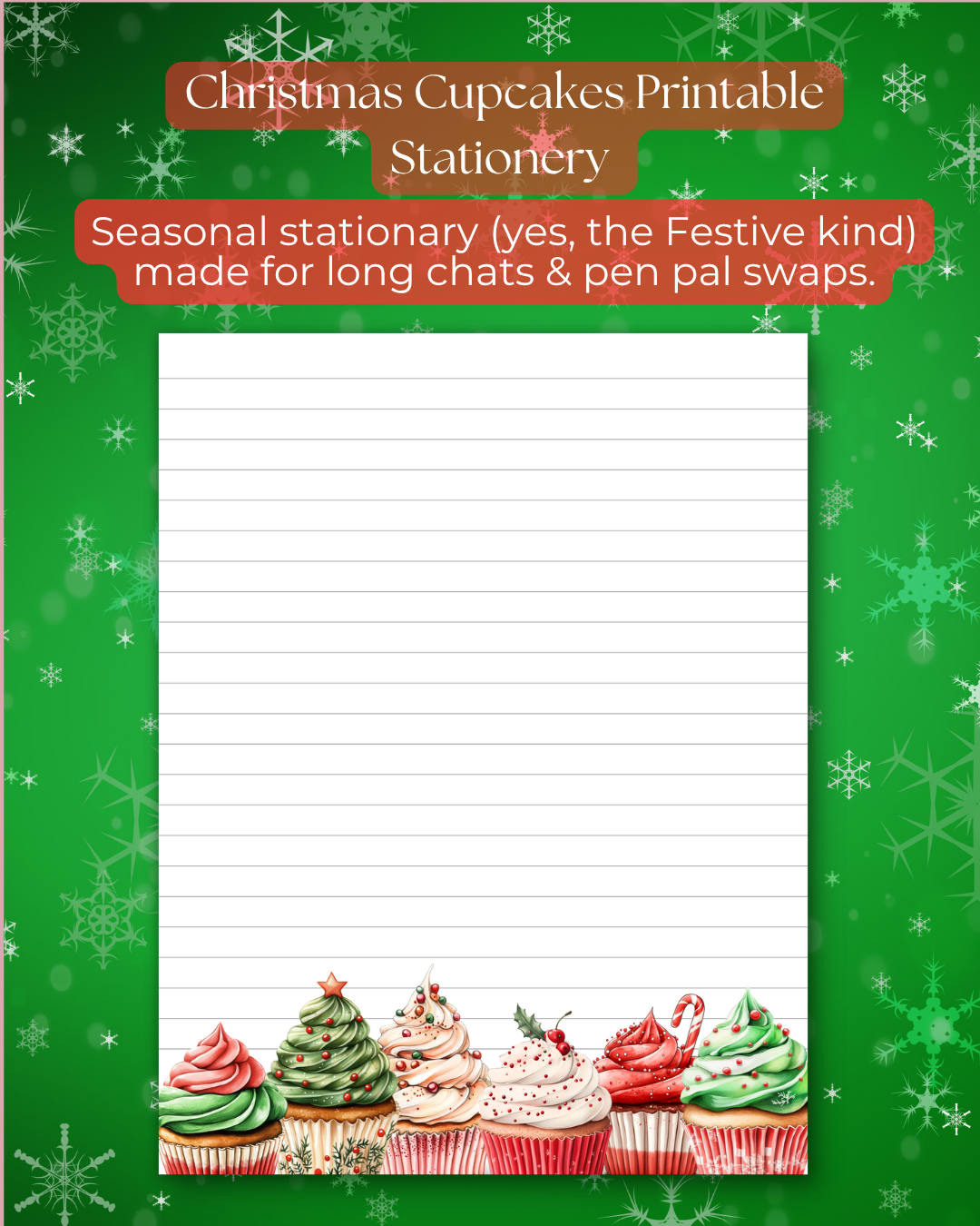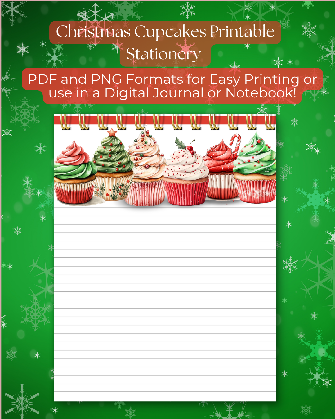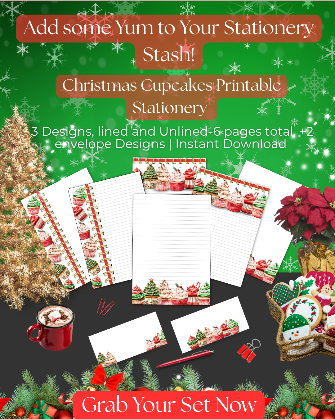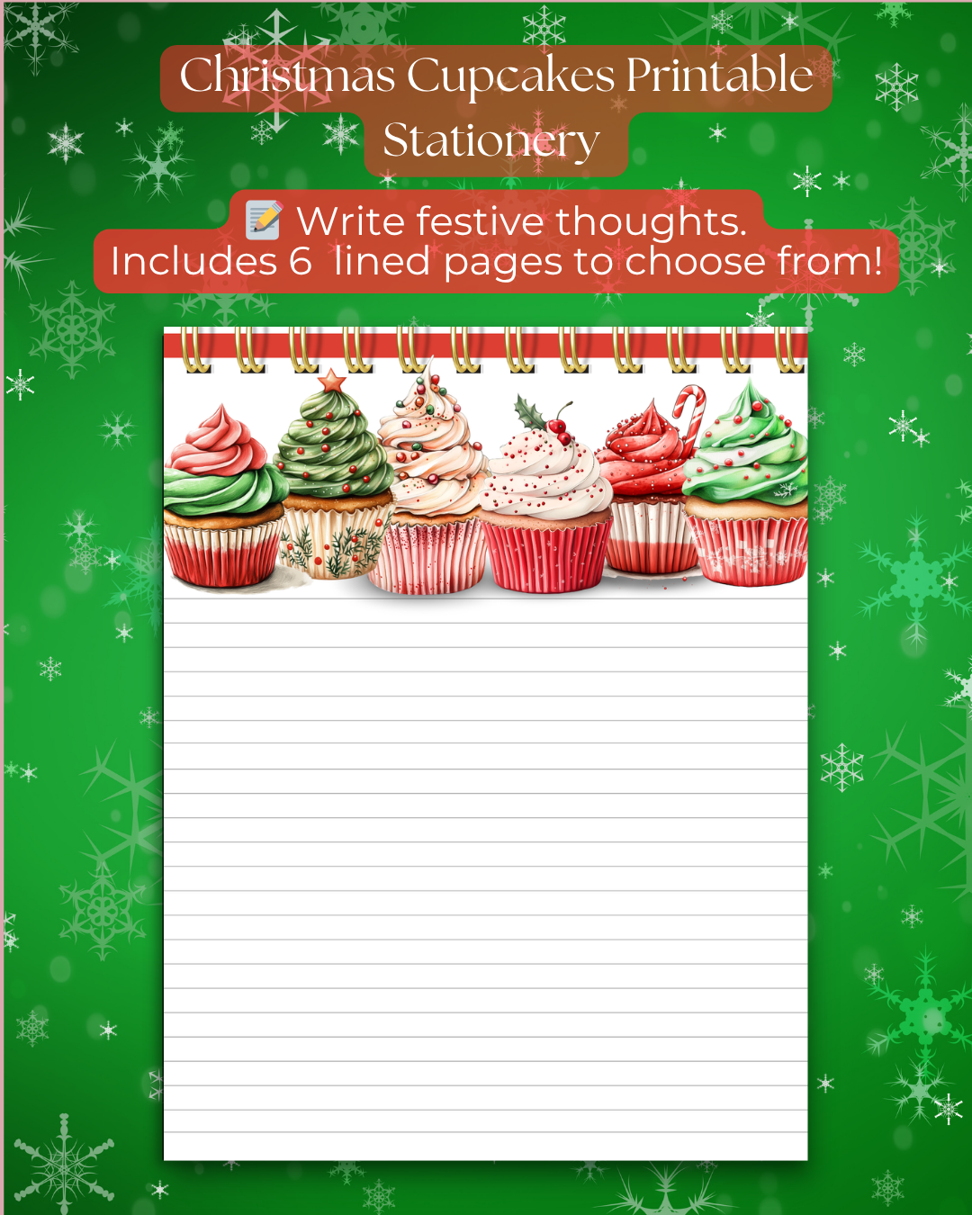 Add some sweetness to your stationery collection with our Christmas Cupcakes Printable Stationery Set! This cozy, festive set features beautifully illustrated cupcakes in shades of red, green, and gold—perfect for spreading holiday cheer through letters, journaling, or seasonal notes.