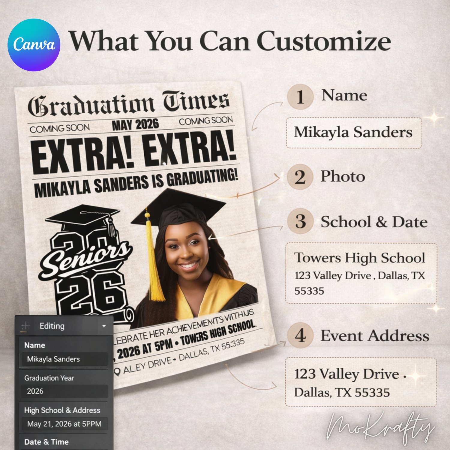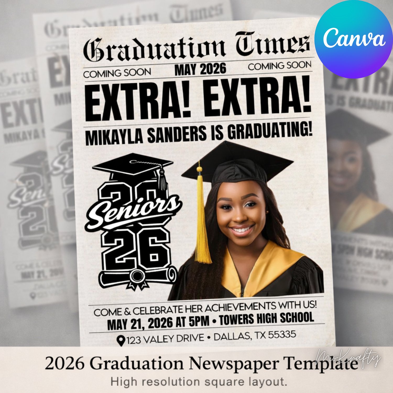 Editable Graduation Newspaper Template 2026 | Canva Graduation Announcement | Class of 2026 Grad Party Invite