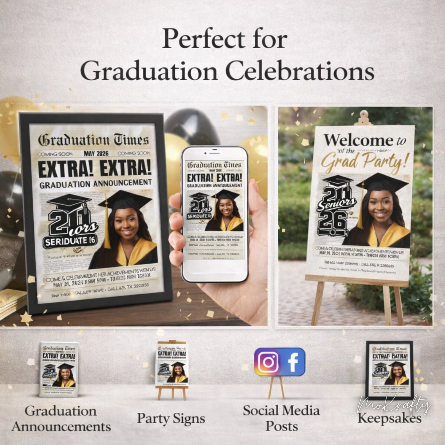 This template is perfect for graduation announcements, party invitations, keepsakes, and social media posts.