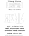 This is a modern 20 panel under-bust corset pattern that uses opposing gussets to enable interesting material combinations - Sizes (UK) 8 -20 (US 4 - 16). This pattern also has different top and bottom sections to make it easier for you to size - 3 different under-bust and 6 different hip sizes against every waist size, so for instance if you are a 26'' waist, you can choose under-bust top sections of 30'', 31'', 32''' and bottom hip sections of 34'', 35'', 36'', 37'', 38''or 39''. If you fall within these sizes you will have not have to make any adjustments to your pattern whatsoever! It is still recommended you make a toile to tweak that final fit to achieve a comfortable fitting corset. Note - there is generous space in the front rib and sacrum areas. The gusset juxtapositions dictate an interesting design but precision cutting and exactness is needed hence it is categorised as an intermediate level design.