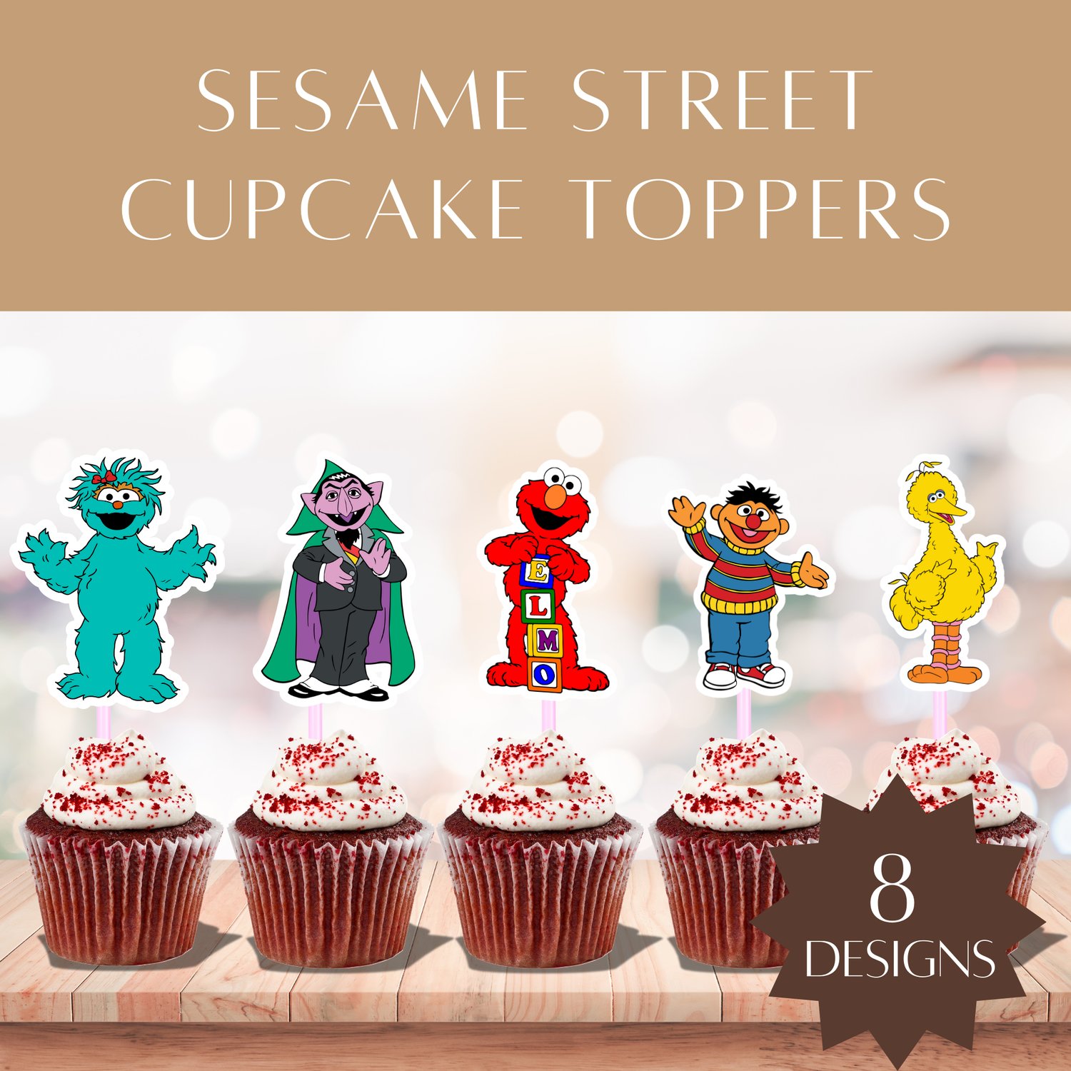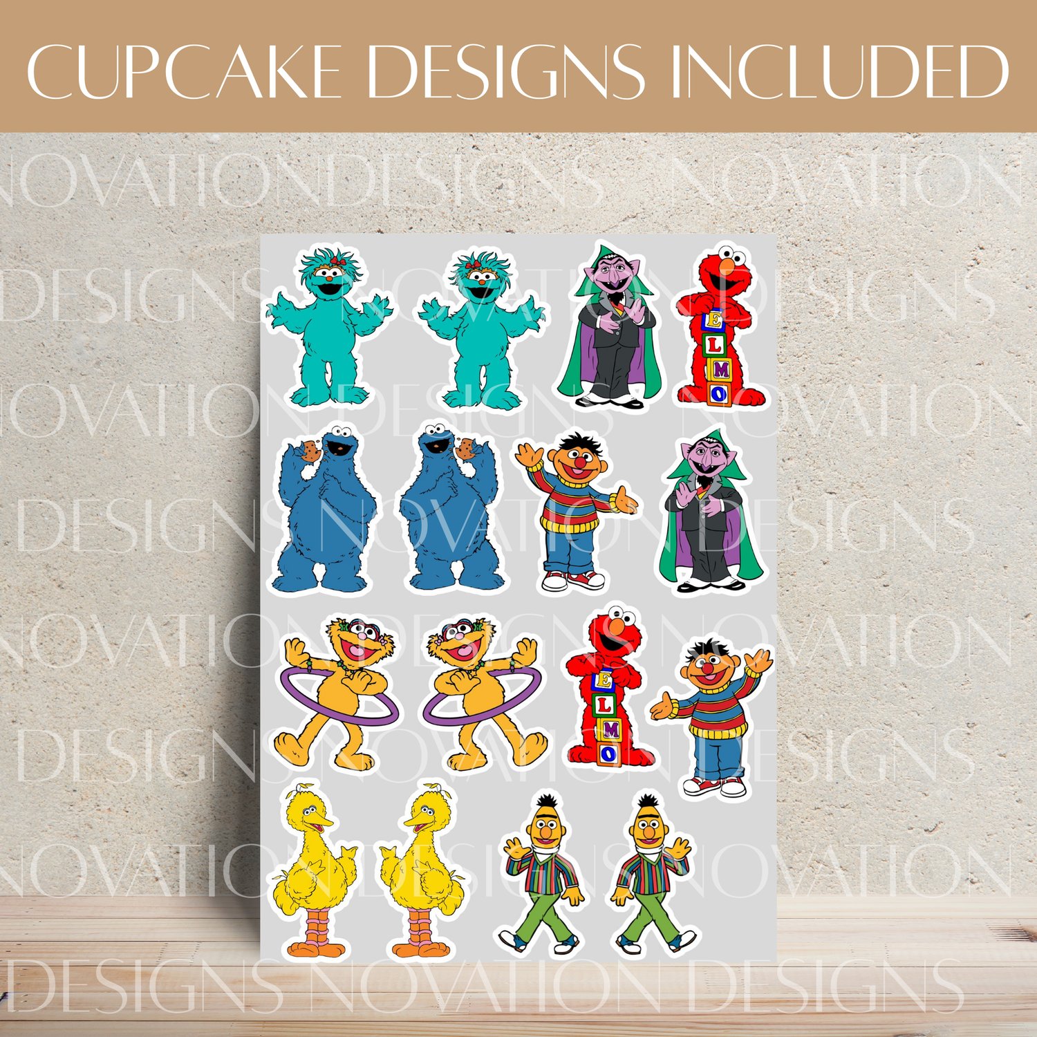 - High-resolution JPG file with multiple Sesame Street character toppers