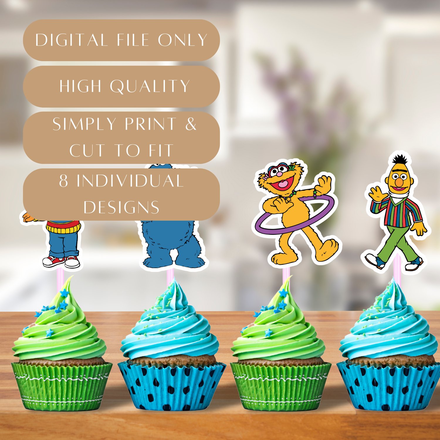 Place them into cupcakes, treats, centerpieces, or anywhere you want a little extra Sesame Street magic!