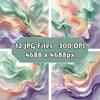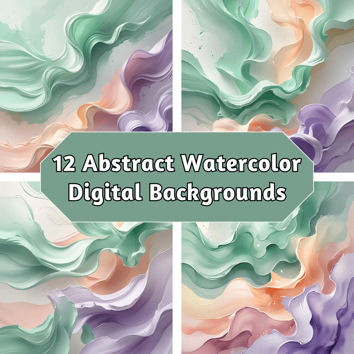 Bring a touch of delicate beauty to your designs with this set of 12 high-quality abstract watercolor backgrounds. Featuring soft, flowing brush strokes in dreamy pastel shades of mint green, peach, and lilac, these backgrounds create a serene and airy atmosphere. The gentle blending of colors and subtle transparency enhance the organic brushwork, adding a sense of movement and depth. Soft, even lighting highlights the fine details, making these backgrounds perfect for elegant and artistic projects.