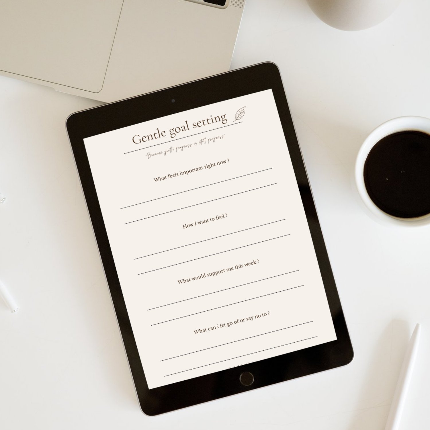 Set goals without the pressure with the Gentle Goal Setting template – an editable, printable PDF designed to help you map out intentions in a soft, realistic way.