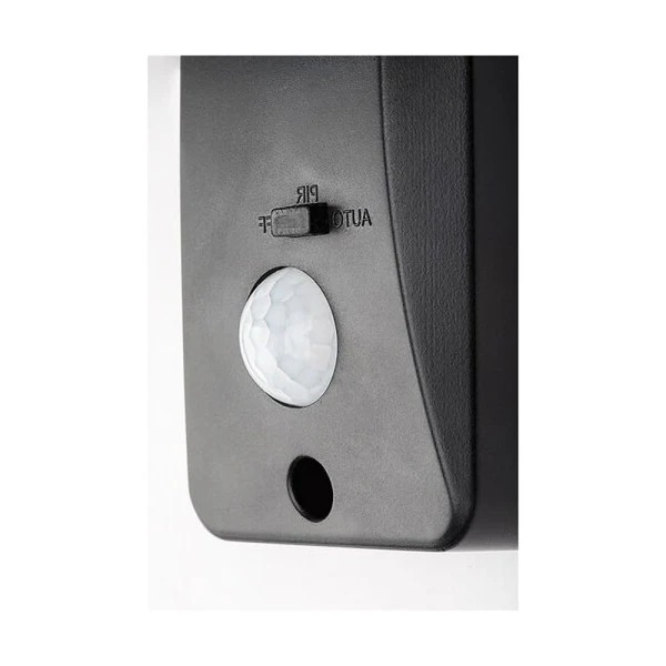 The intelligent sensor adjusts the brightness of the lamp according to surrounding conditions and detects motion at a distance of 5 to 8 meters within a 120° viewing angle.