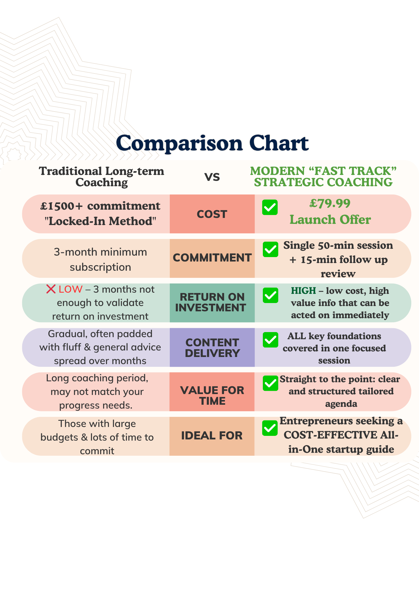 While we won’t create a full business plan in one session, you will walk away with a clear structure, strong foundations, and actionable steps to start building or refining your business with purpose.