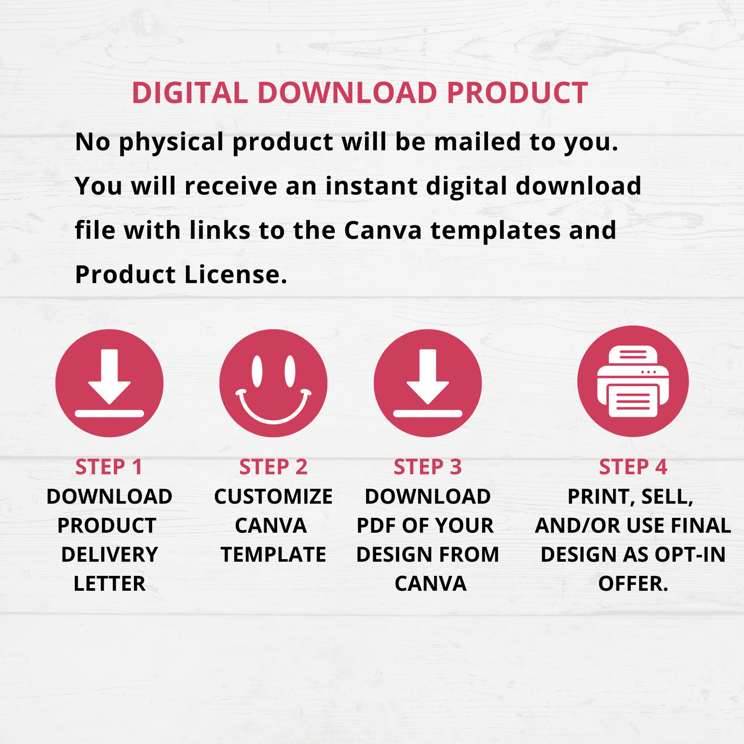 👉🏻After payment is processed, you will receive 1 PDF File Containing a Delivery Letter with links to your product, helpful Canva instructions, and product license.