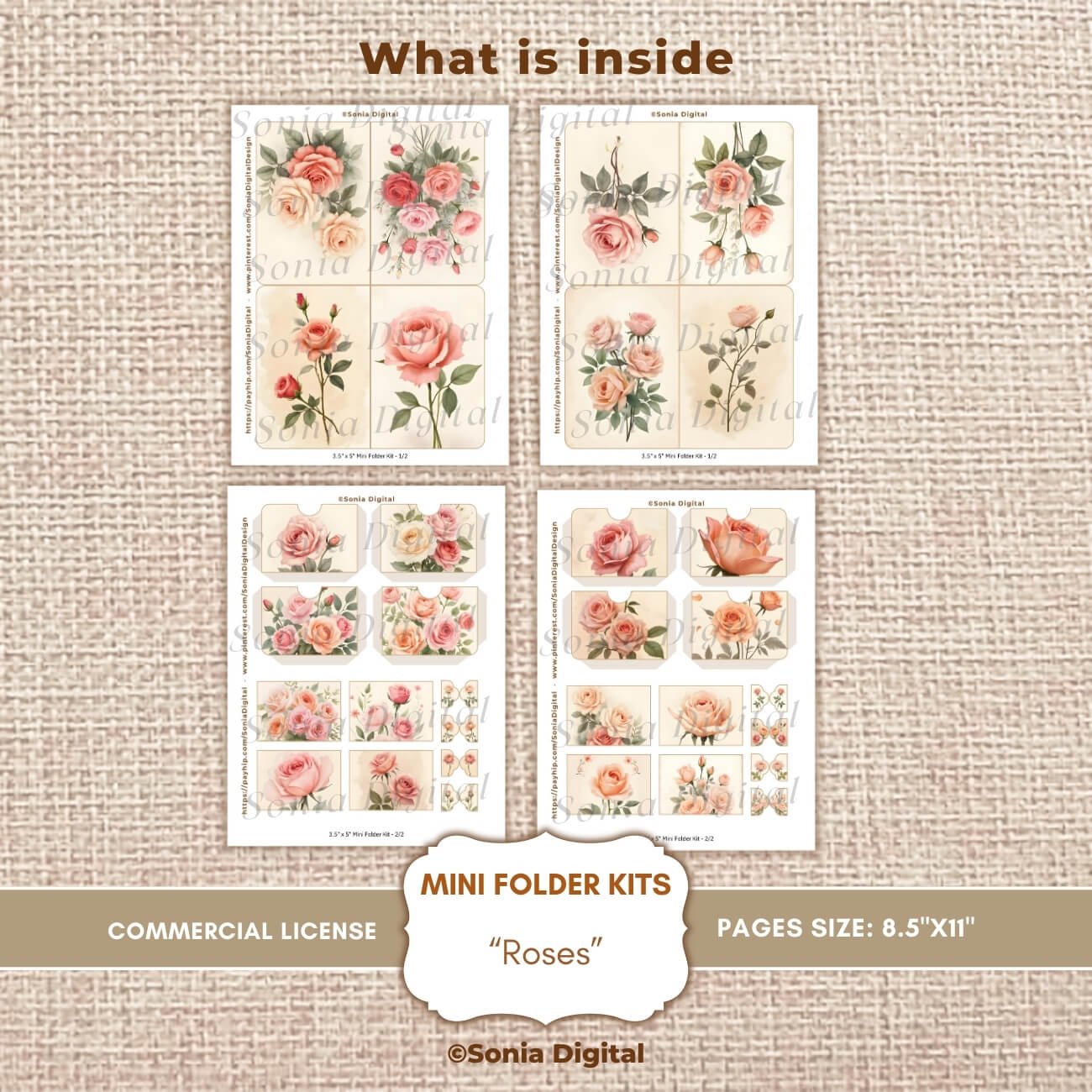 🔸4 printable pages containing 2 Mini Folder Kits (3.5” x 5”), “Roses” Collection. Pages are Letter size (8.5” x 11”). All pages are sold watermark-free. Commercial use license included*.