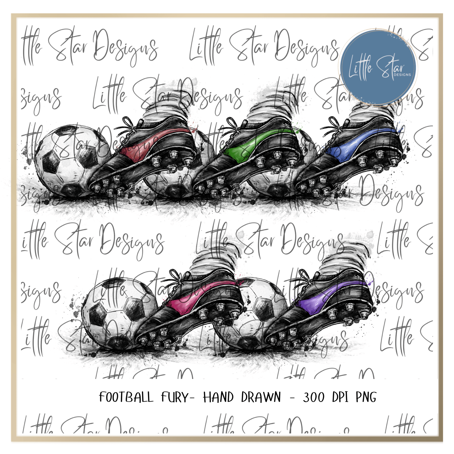 This is a high-quality hand drawn (300dpi PNG) digital download of my original artwork, titled ''Football Fury'', designed for sublimation and print.