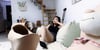 When she wakes up in the morning, Emma moves her body to boost her energy. She changes her clothes and has a cup of coffee.