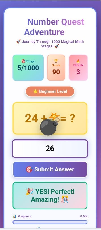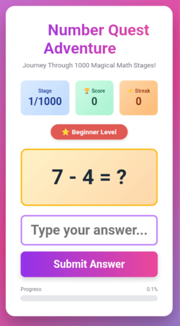 Embark on an epic mathematical journey through 1000 colorful, progressively challenging stages! Perfect for all ages - from young learners to math enthusiasts.