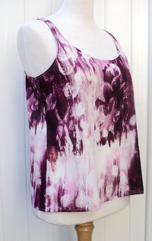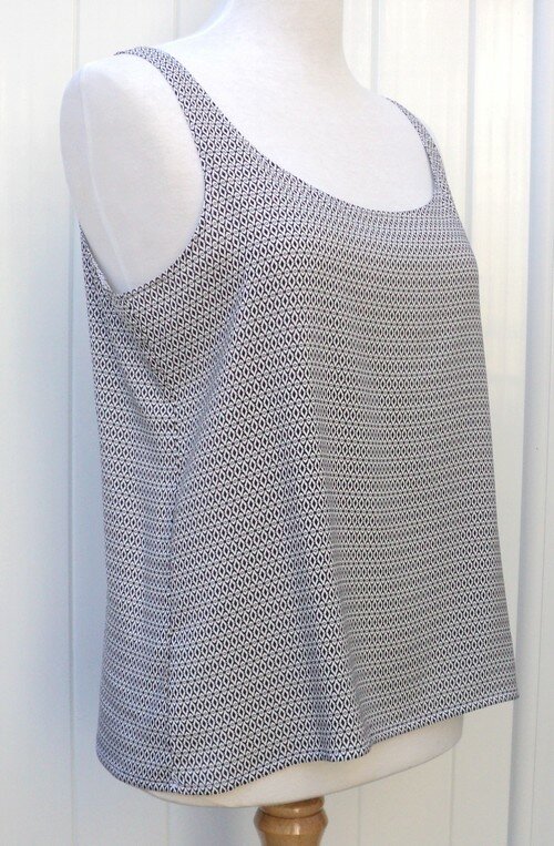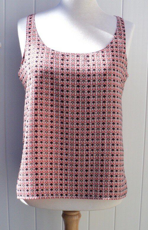 Modèle encolure arrondie, sans manches et légèrement évasé.