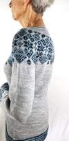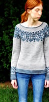 Information for adjusting sleeve and body length are included in the pattern. The fair isle motifs are both written and charted. Video tutorials are included for the short row shaping and edging stitch.